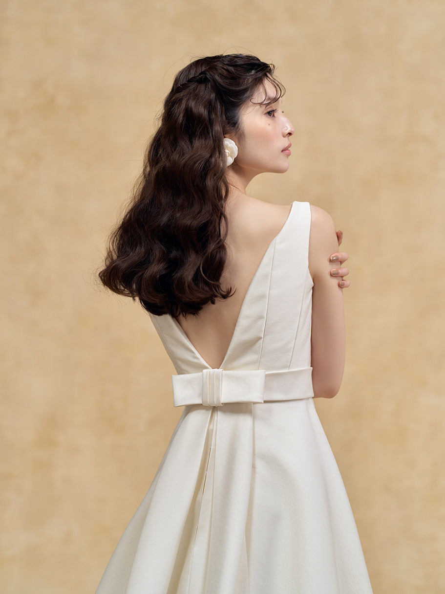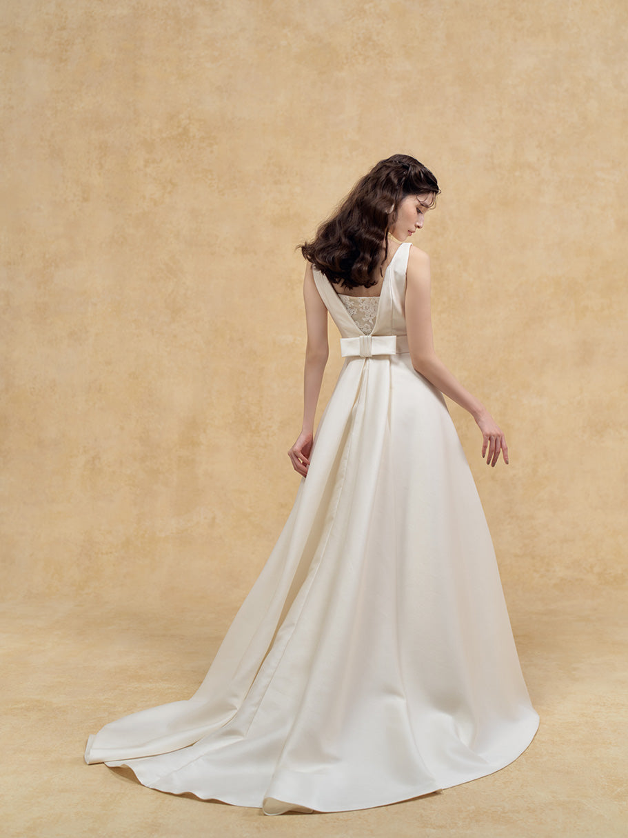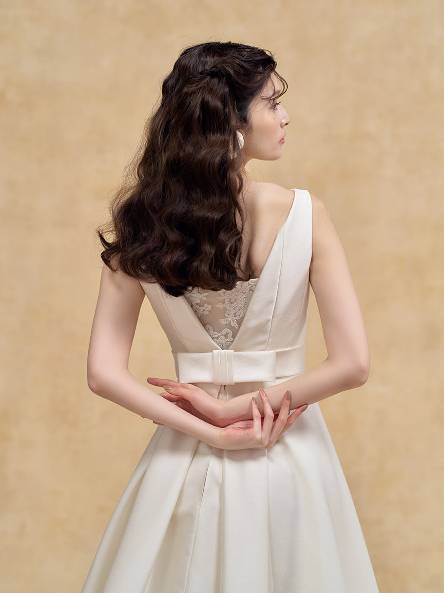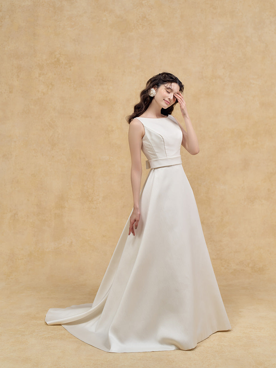張りのあるサテン地でシンプルに仕立てたクラシカルなマリエ。