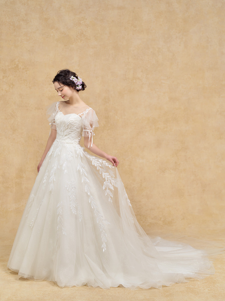 リーフモチーフのオーバードレスで可憐な印象に。
