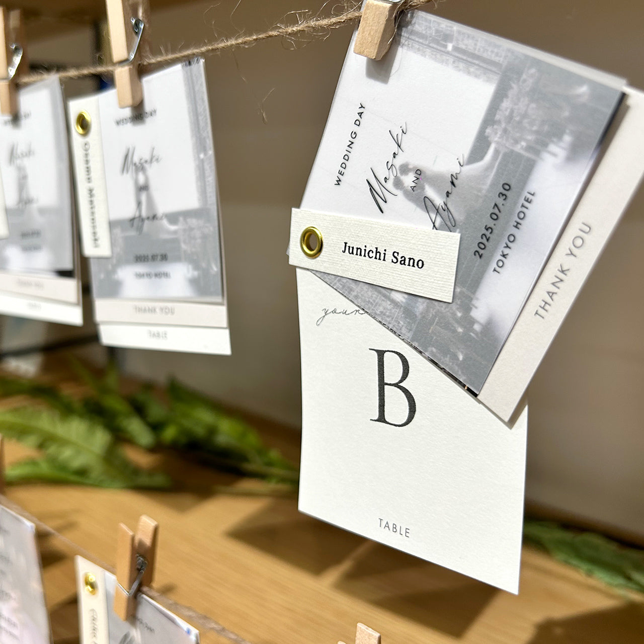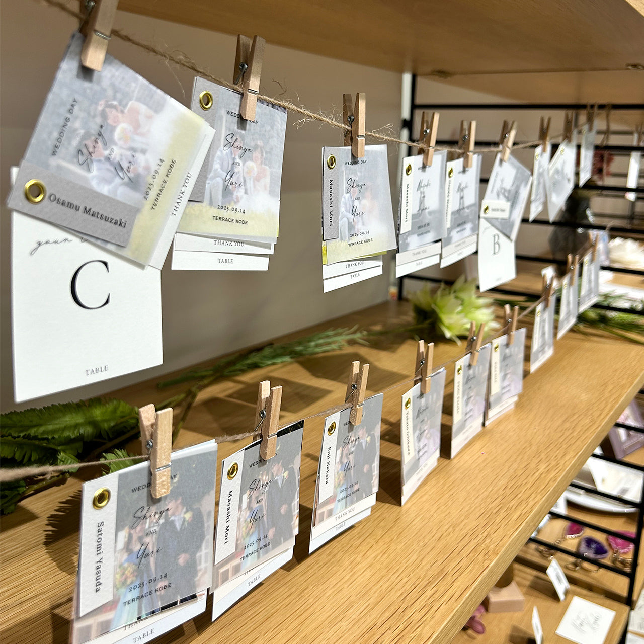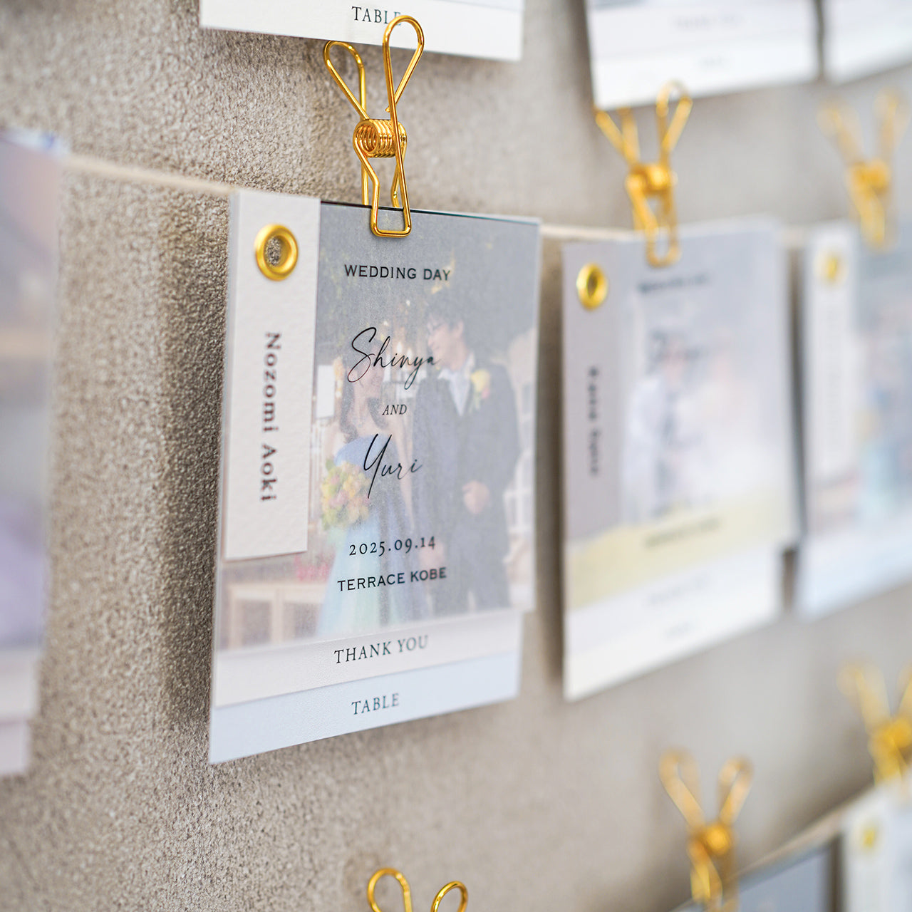 ・エスコートカードとしてウェルカムスペースを装飾 使用する紙にも1枚1枚こだわった、上質な仕上がりです。