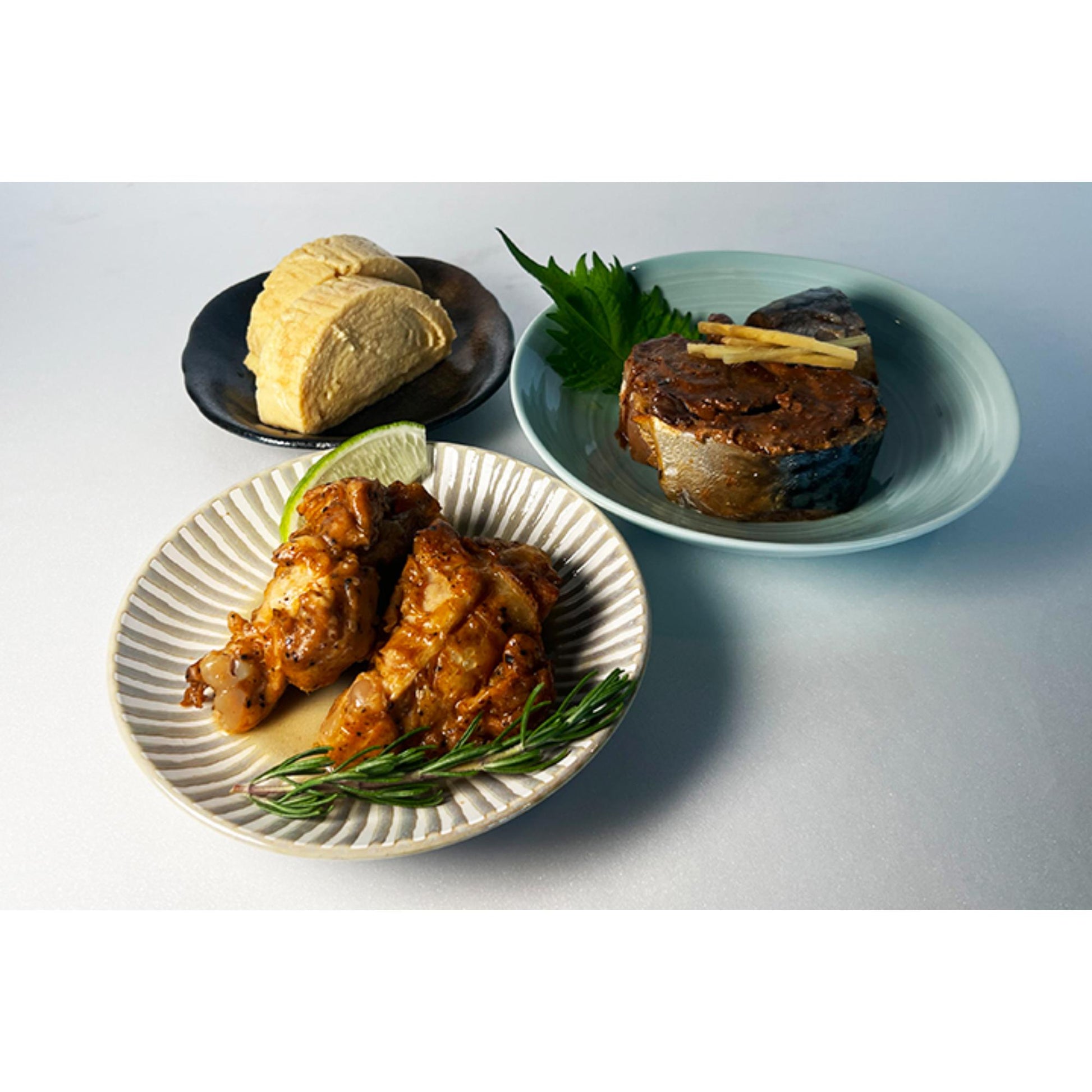 | 素材 | 【グリルチキン】:鶏肉(手羽元)、澱粉、醤油、砂糖、食塩、大豆油、黒胡椒、小麦粉加工品、にんにく末、パプリカ/ポリリン酸ナトリウム、調味料(アミノ酸)、パプリカ色素、(一部に小麦・大豆・鶏肉を含む) 【だし巻き】:鶏卵、だし汁、発酵調味料、でん粉、食塩、かつお節エキス、水飴、魚介エキス、酵母エキス、昆布エキス、大豆油、加工デンプン、pH調整剤、調味料(アミノ酸)、グリシン、酢酸ナトリウム(原材料の一部に小麦、さばを含む)【鯖醤油煮ゆず】:さば(ノルウェー産)、しょうゆ(小麦・大豆を含む)、柚子果汁、砂糖、澱粉/調味料(アミノ酸) |