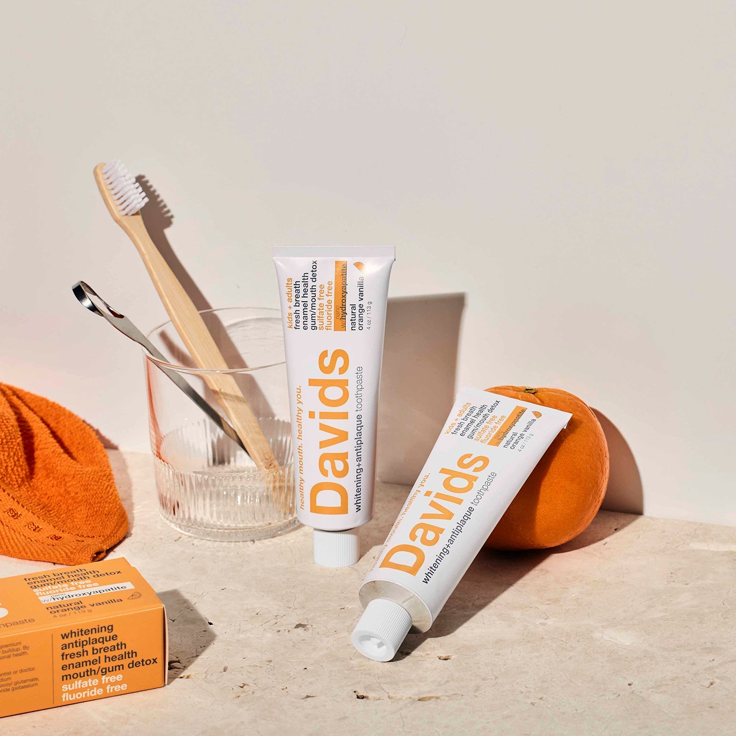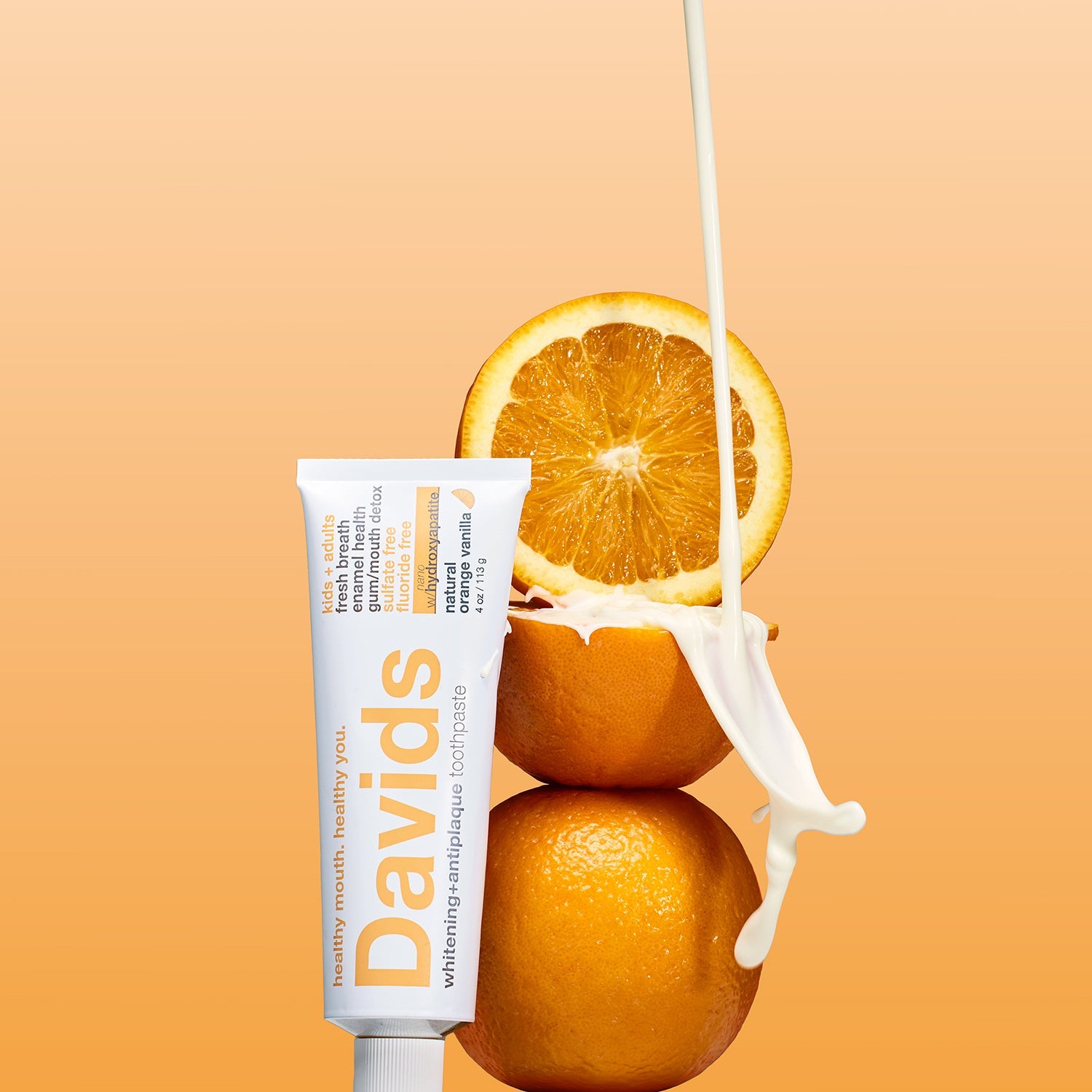 Davidsホワイトニングトゥースペースト(オレンジバニラ)は、天然原料のみをベースとした、フレッシュなオレンジバニラフレーバーのホワイトニング歯磨き粉です。