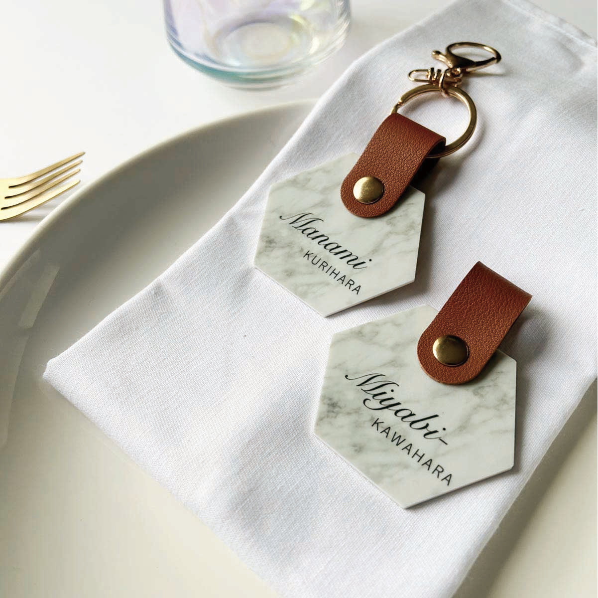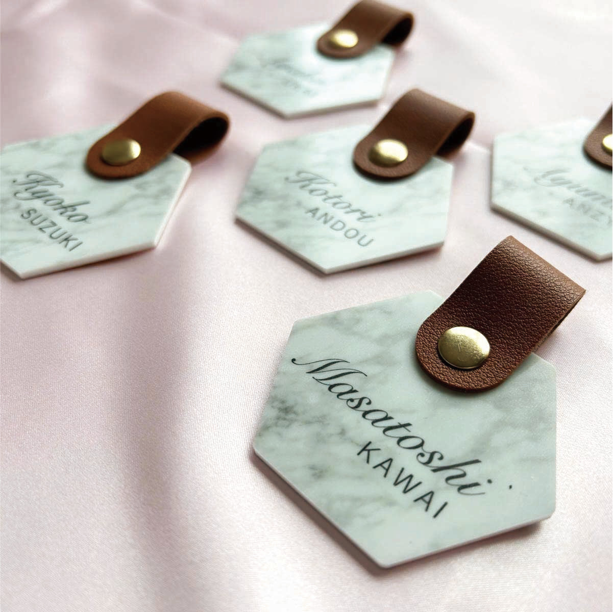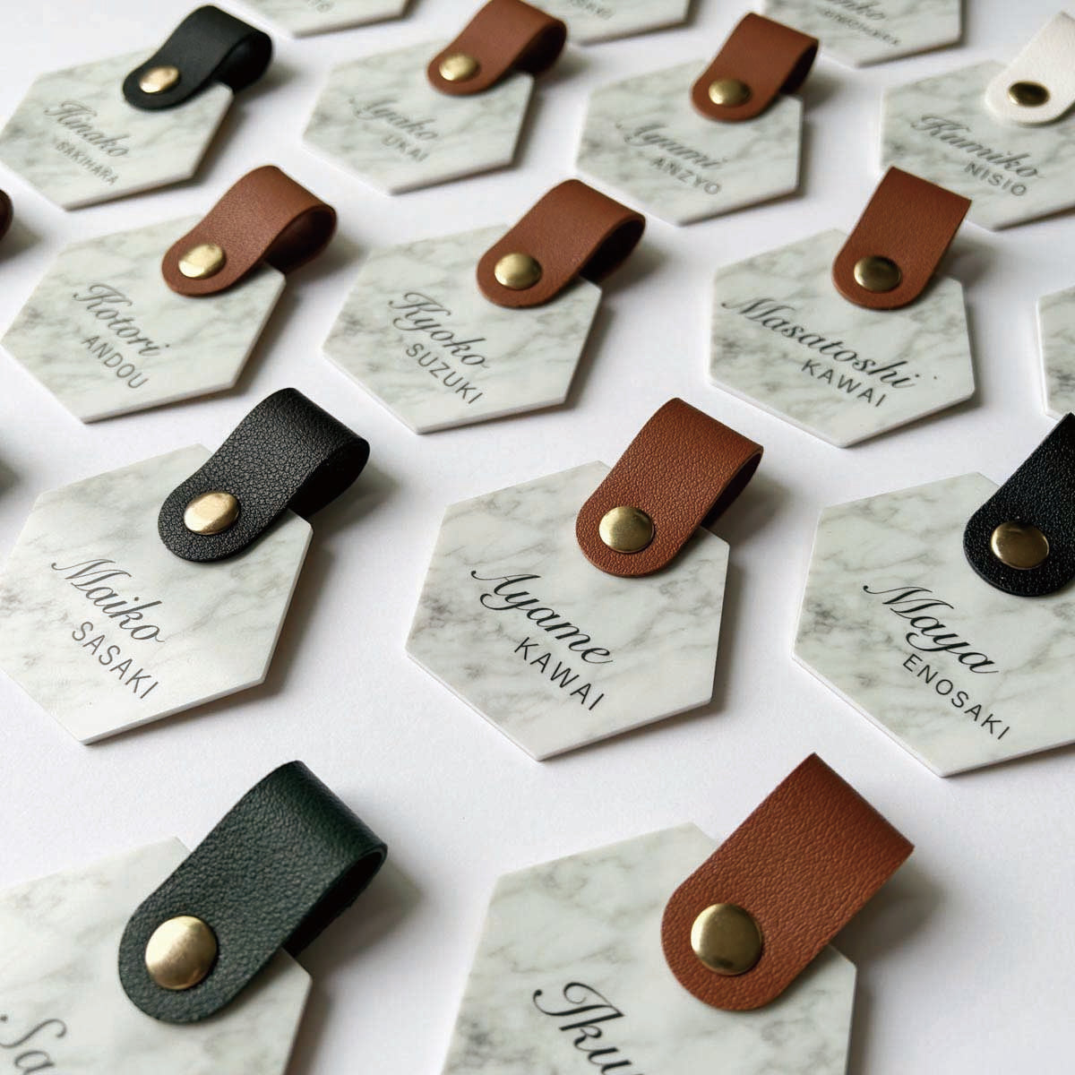 「1個から購入可能」大理石タイル風 席札 ヘキサゴン エスコートカード アクリル ネームタグ ラゲッジタグ ニュアンス【結婚式 ペーパー 席札】