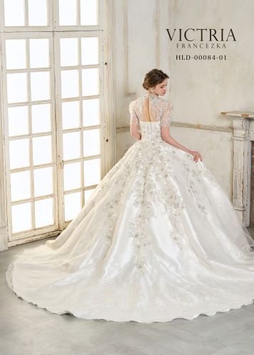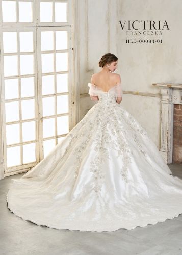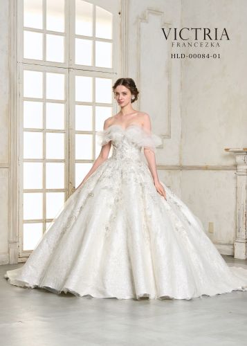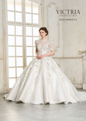 身頃からビーズレースが流れ、下からのグリッターで立ち上がる360℃豪華なプリンセスラインです。