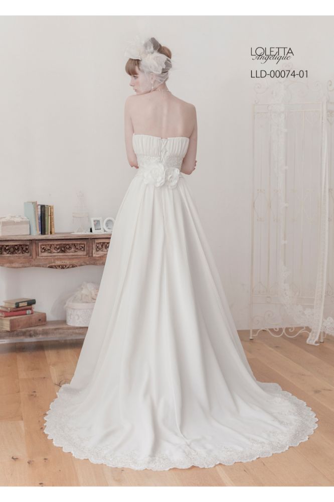 コサージュの位置も変えれるのでミニとロングで使い分けて頂く事も可能。挙式を終え、二次会で着用してもゲストも誰も同じドレスとは思えないほどの変化が楽しめます。