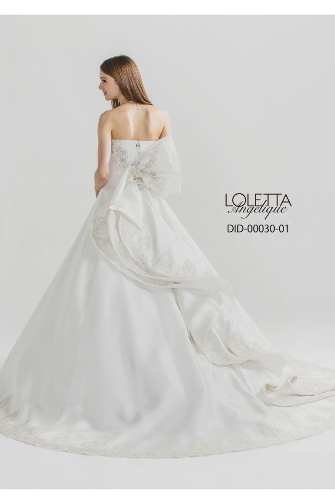 バックリボンと流れるようなミカドフリルがドラマティックなバックスタイルを演出します。バックリボンと流れるようなミカドフリルがドラマティックなバックスタイルを演出します。