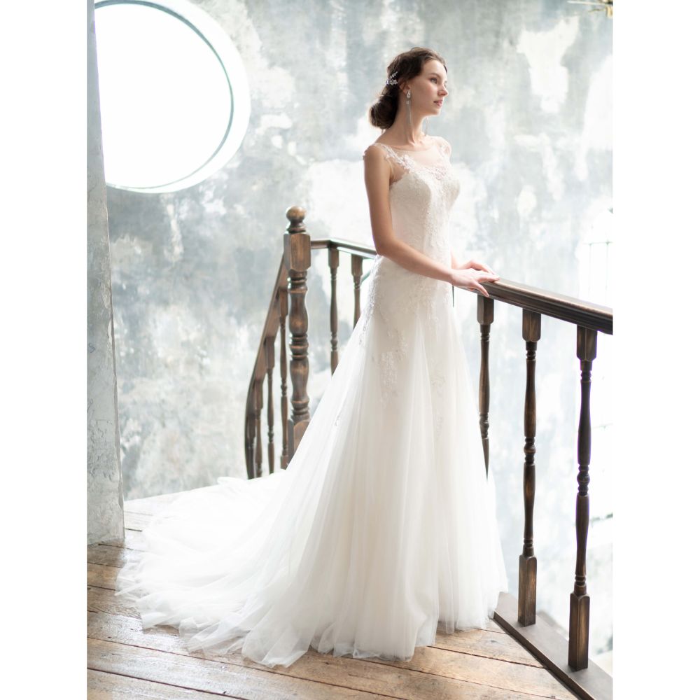 レースのノースリーブスレンダーウェディングドレス 【ウェディングドレス レンタル】