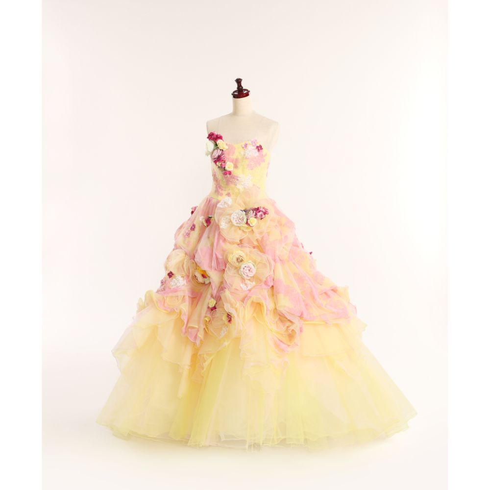 イエロー×ピンクのキュートな可愛い雰囲気のドレス。