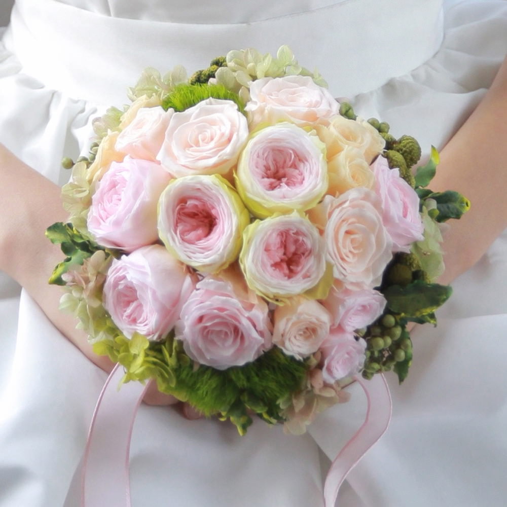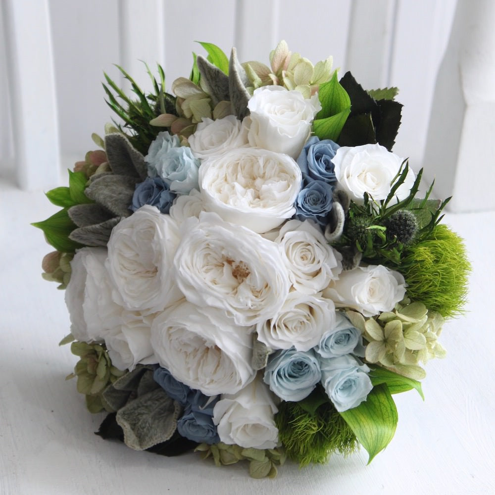 全てプリザーブドフラワーでお作りしたブーケは、長い間みずみずしく美しいままお飾りいただけます。