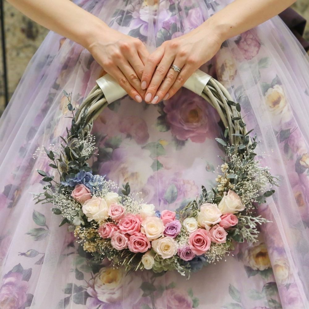完全予約制のアトリエで米国カラー、イメージコンサルタント資格を持つフラワーデザイナーにより、お気に入りのドレスに最適な色、デザインのブーケをご提案いたします。
