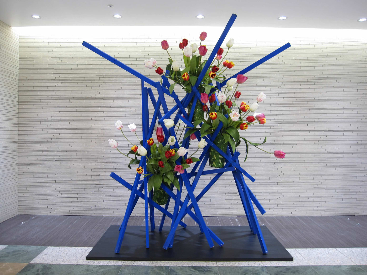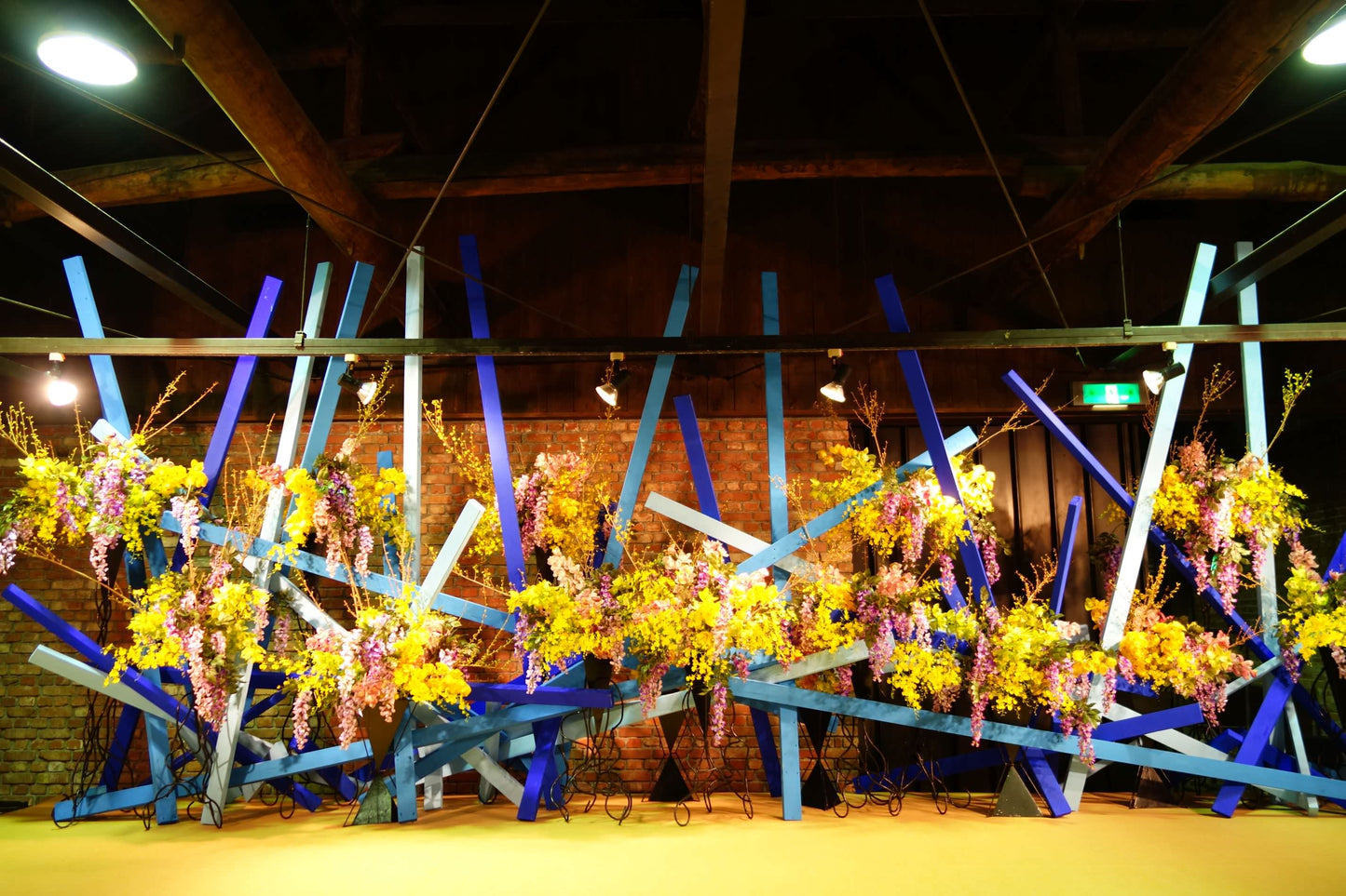 華道家 假屋崎省吾によるウェルカムフラワーの作成です。