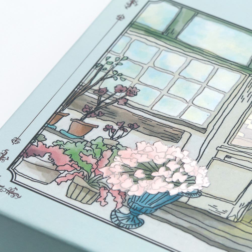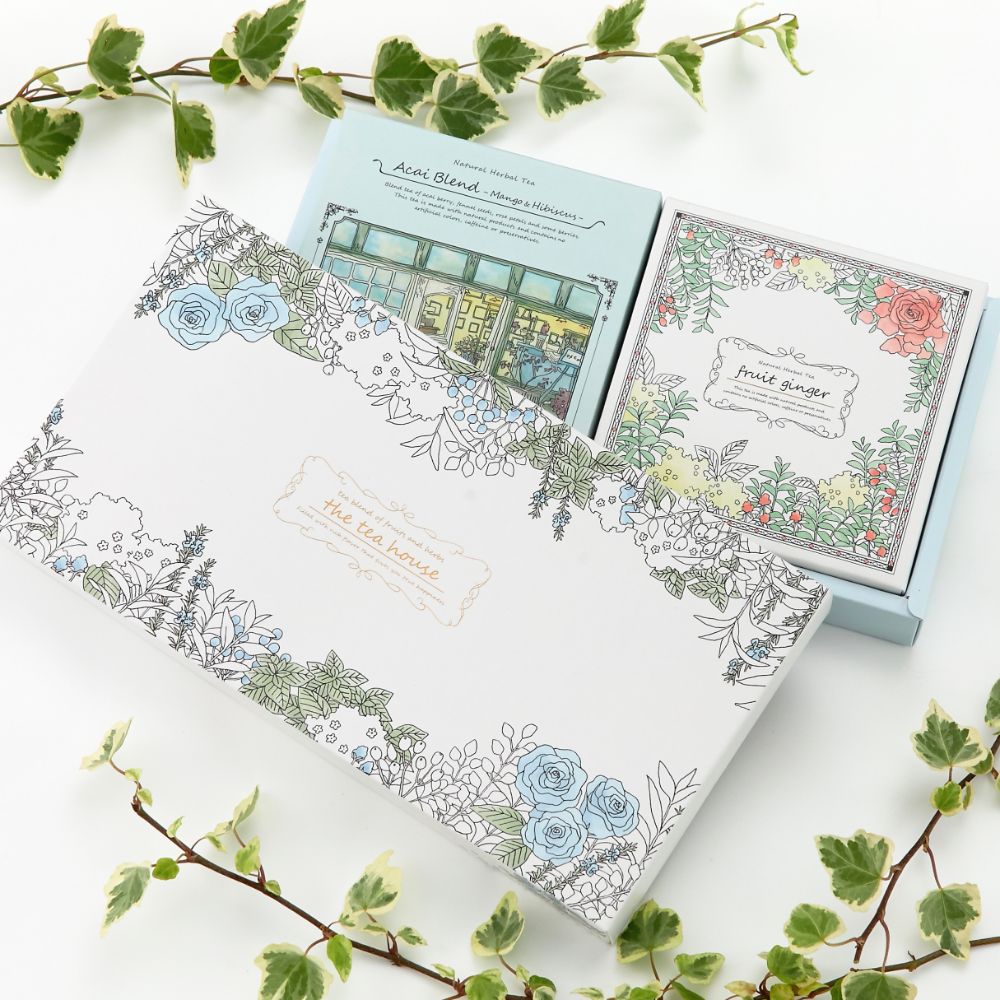 ボタニカルモチーフのギフトボックスにセットしました。