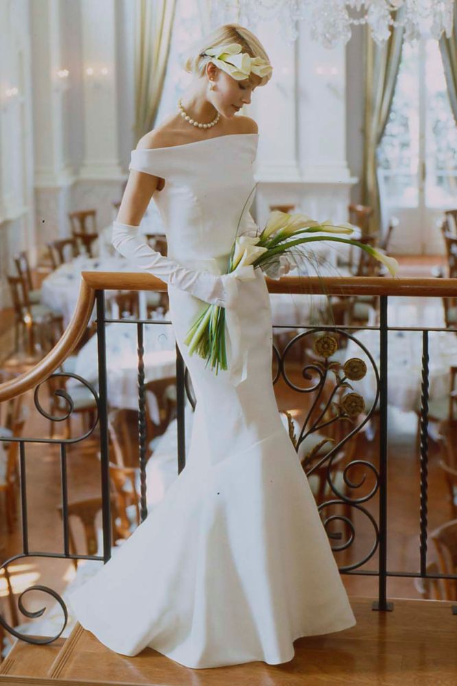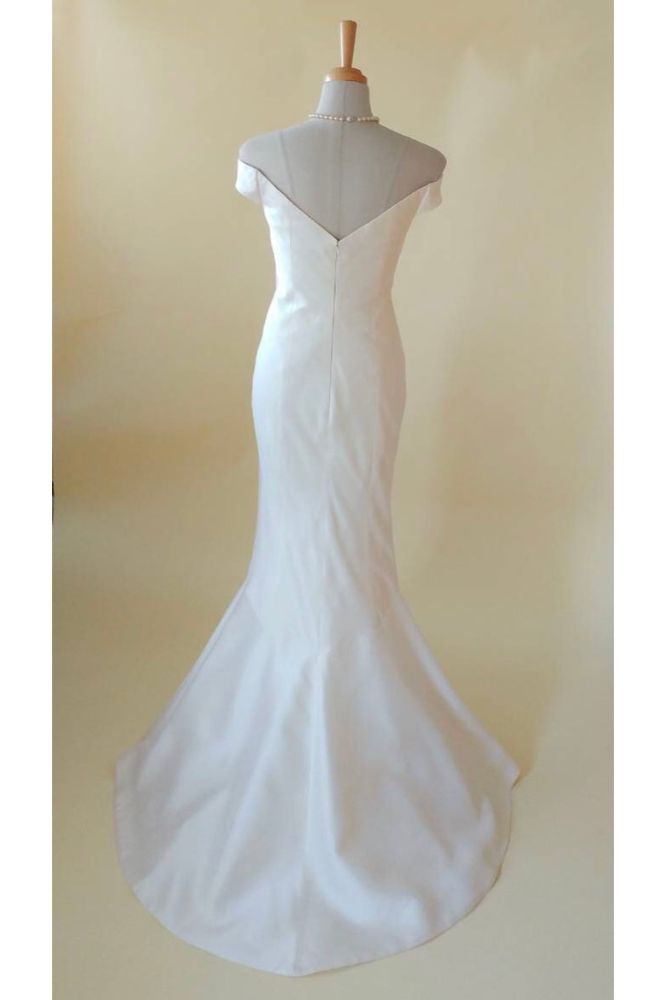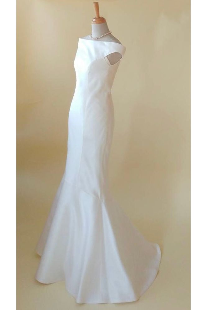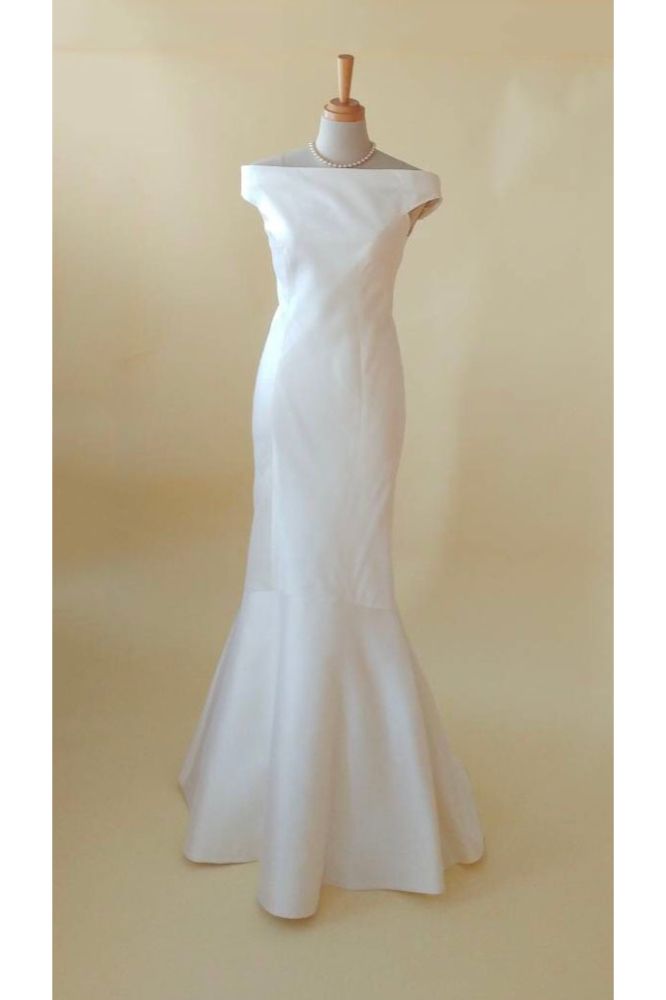 デコルテは立体的な浮きの入ったクチュリエール感あるオフショルダー。