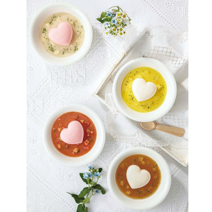 ハート型の可愛らしい見た目のモナカですがお湯を注ぐだけの簡単調理でとろとろな本格スープに早変わり。