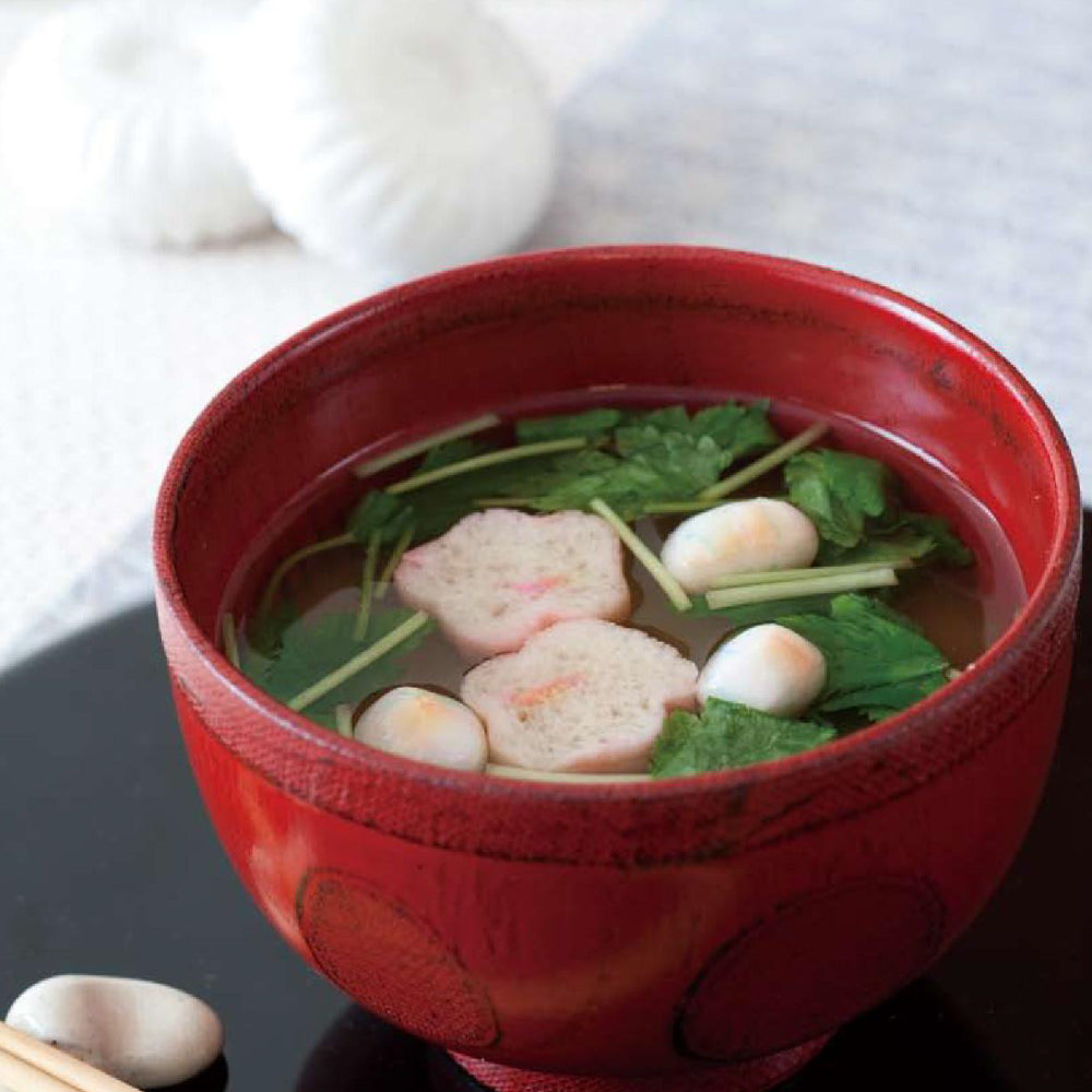 和菓子を思わせる最中の中ですがお湯をそそぐと色とりどりの食材があらわれ最中の香ばしさが漂うお吸い物に変身。