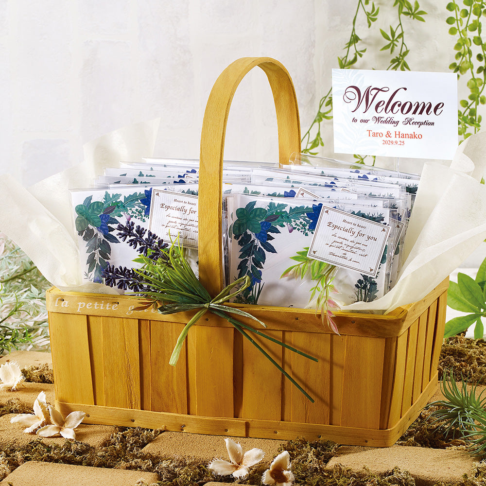 ウェルカム プレート付きバスケットセットは、受付に置くだけでナチュラルグリーンに囲まれた雰囲気が演出できます。