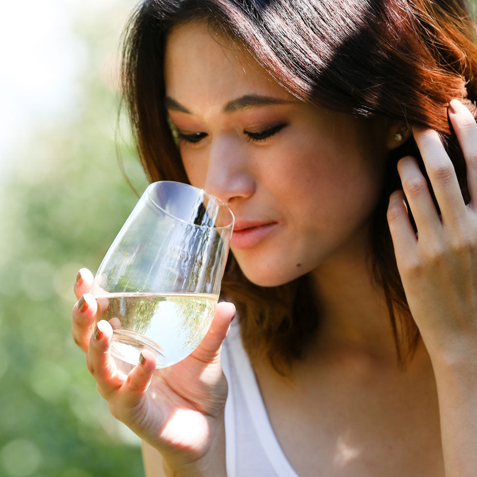 縦長でしっかりとしたすぼまりをもつスタンダードなボウル形状のため、軽めの赤ワインやさっぱりとした白ワインなど、幅広い用途でご利用いただけます。