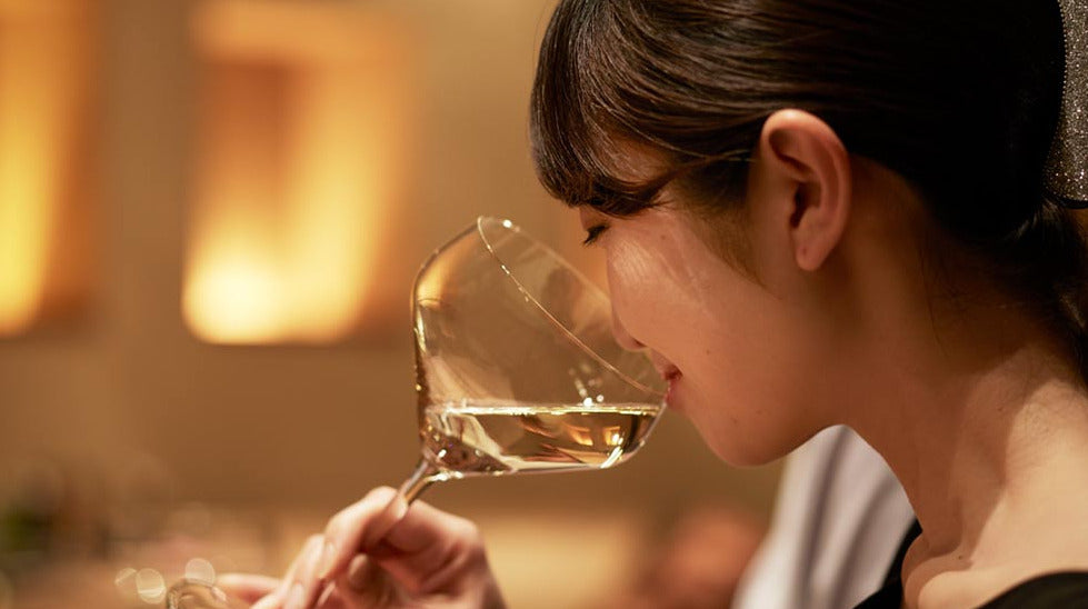研ぎ澄まされた味わいが魅力の大吟醸酒とは対照的に、複雑で奥深い旨味が魅力の純米酒のためのグラスは、その香り、味わいを最大限に引き出すために大ぶりで横長、飲み口の口径が大きい形状となりました。