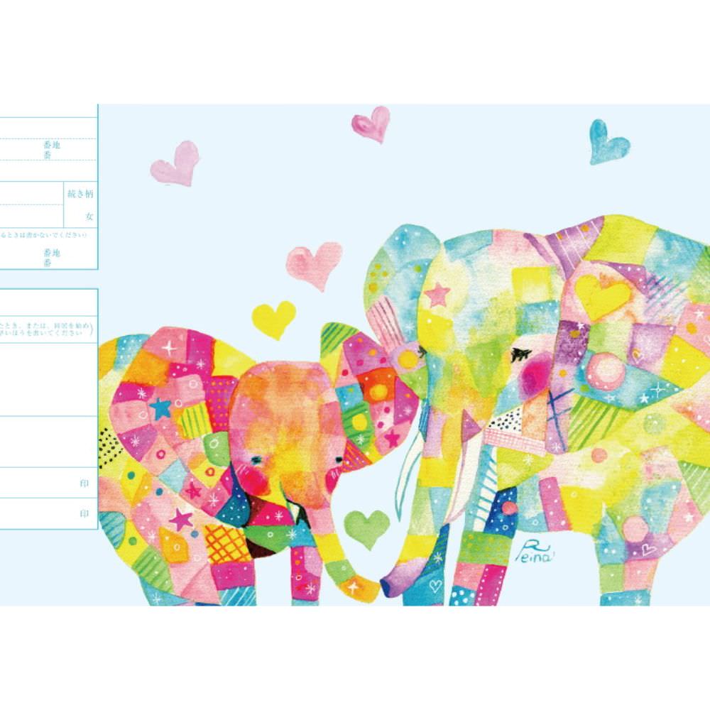 仲睦まじい赤ちゃんゾウとお母さんゾウの姿を描いた、パステルブルーのデザイン