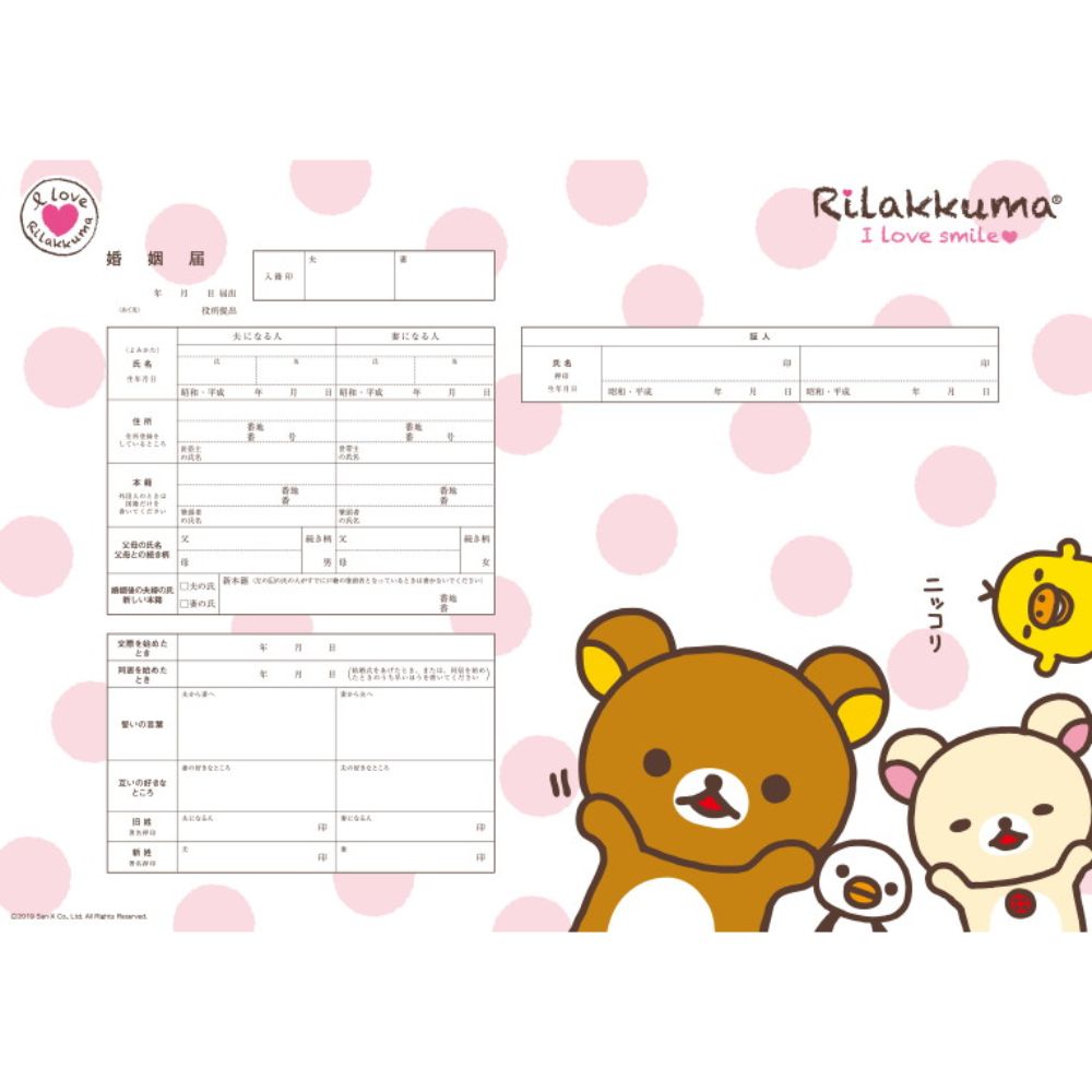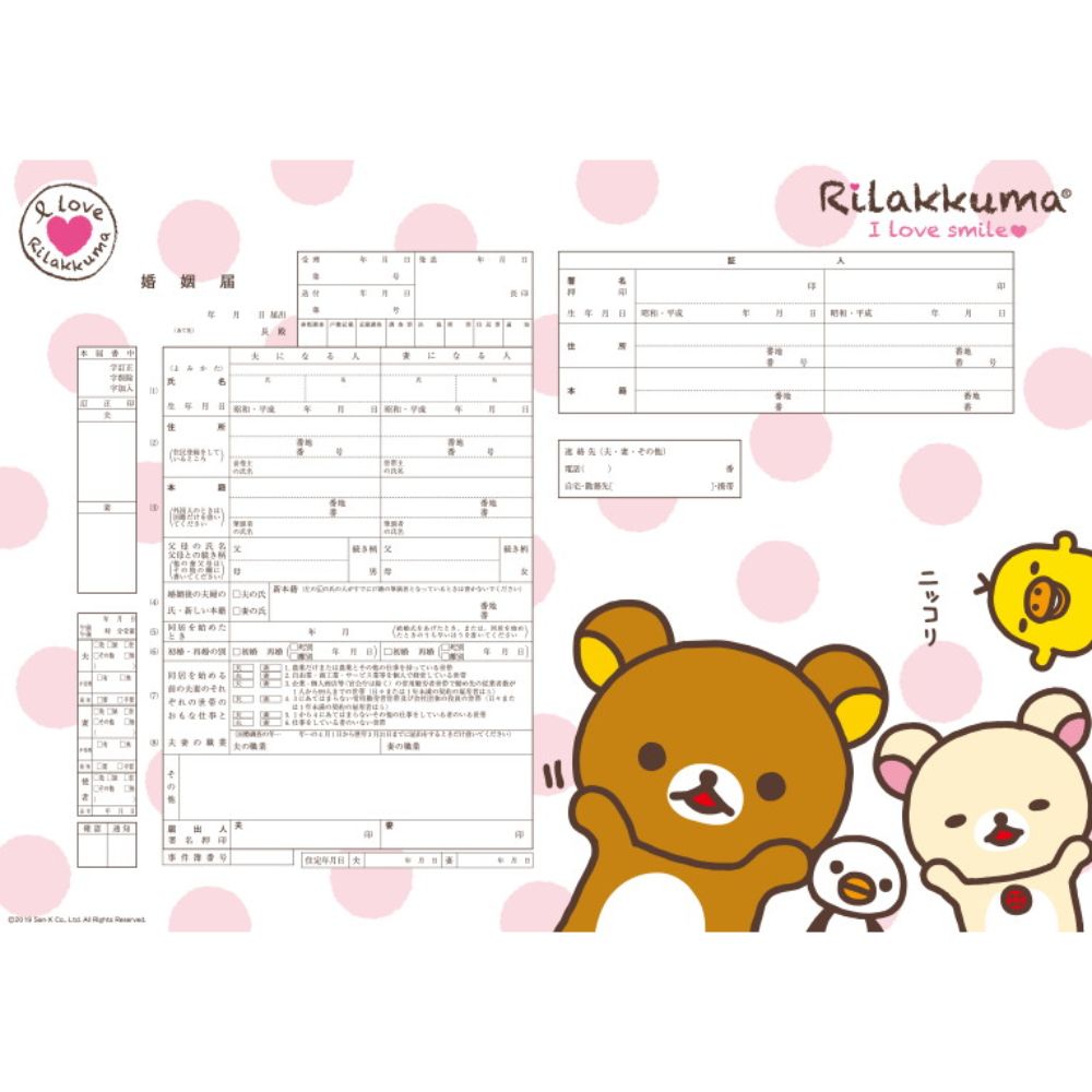 リラックマ(ピンク水玉)【婚姻届】
