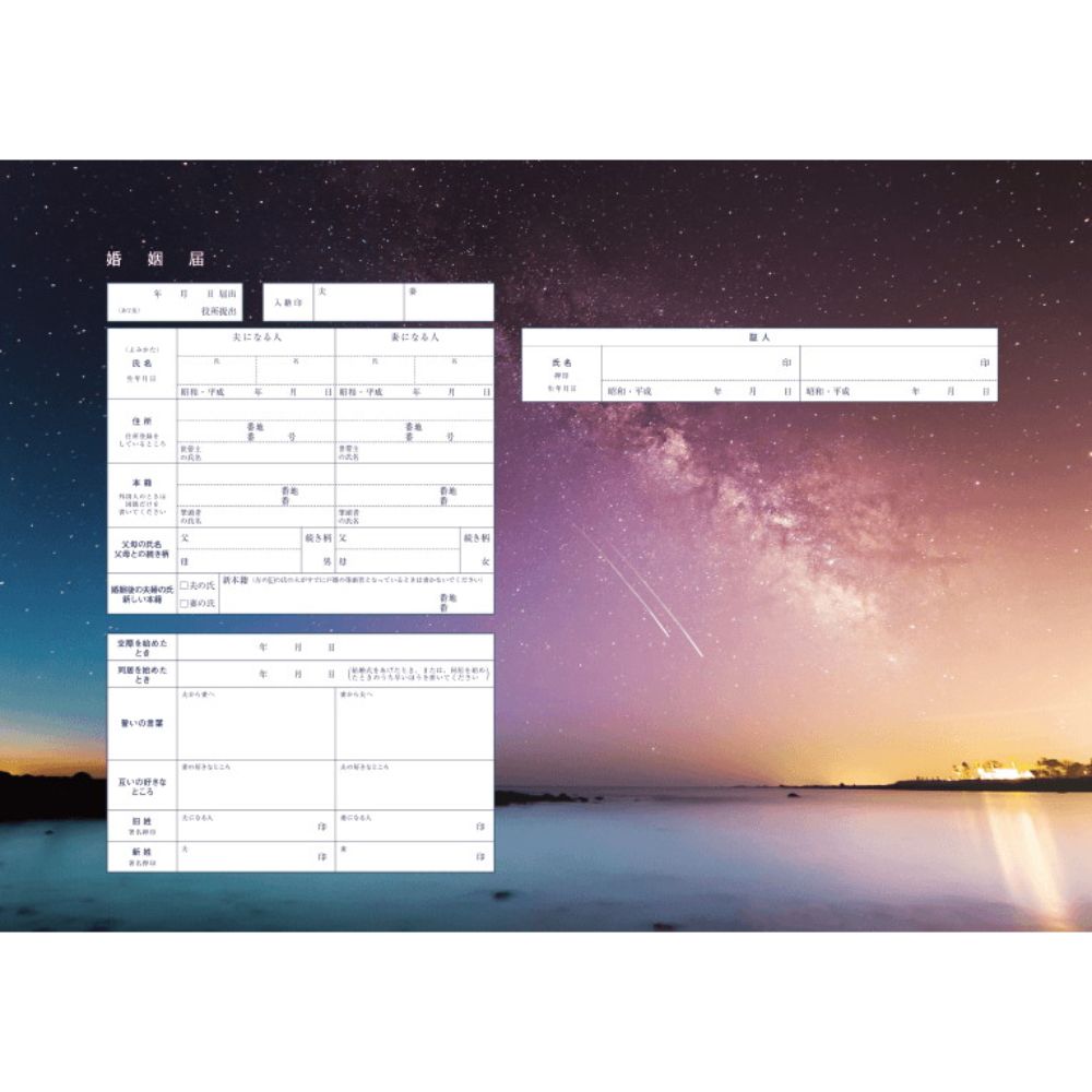 美しい夜空に、ふたつの流れ星が光るデザイン クリスマス入籍にもおすすめです