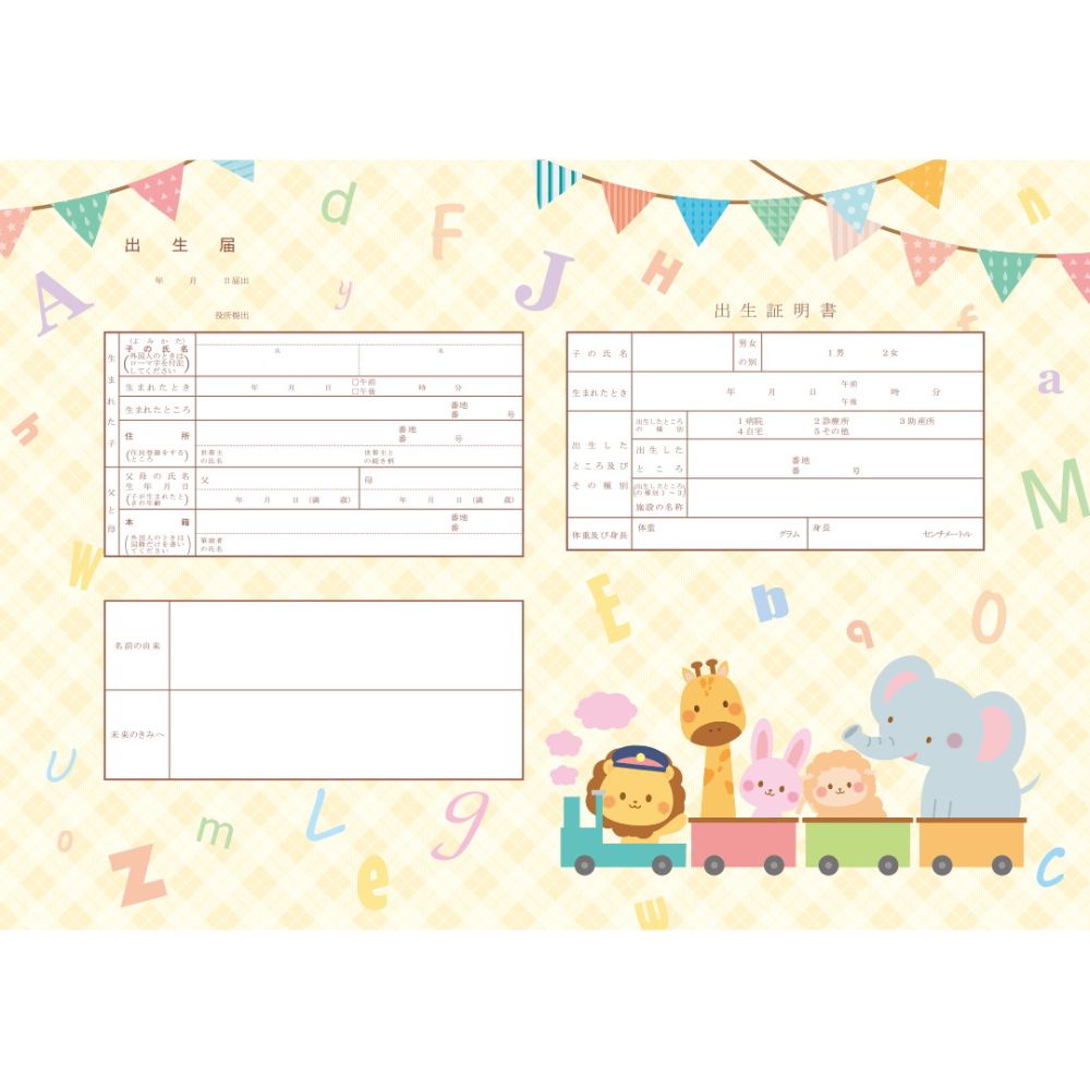 お子さまと汽車のおもちゃで遊ぶ動物の仲間たちを描いたデザイン。ポップなテイストでかわいらしく描かれた動物たちがお子さまのご誕生を喜んでいます。散りばめられたアルファベットも愛らしい一枚です。