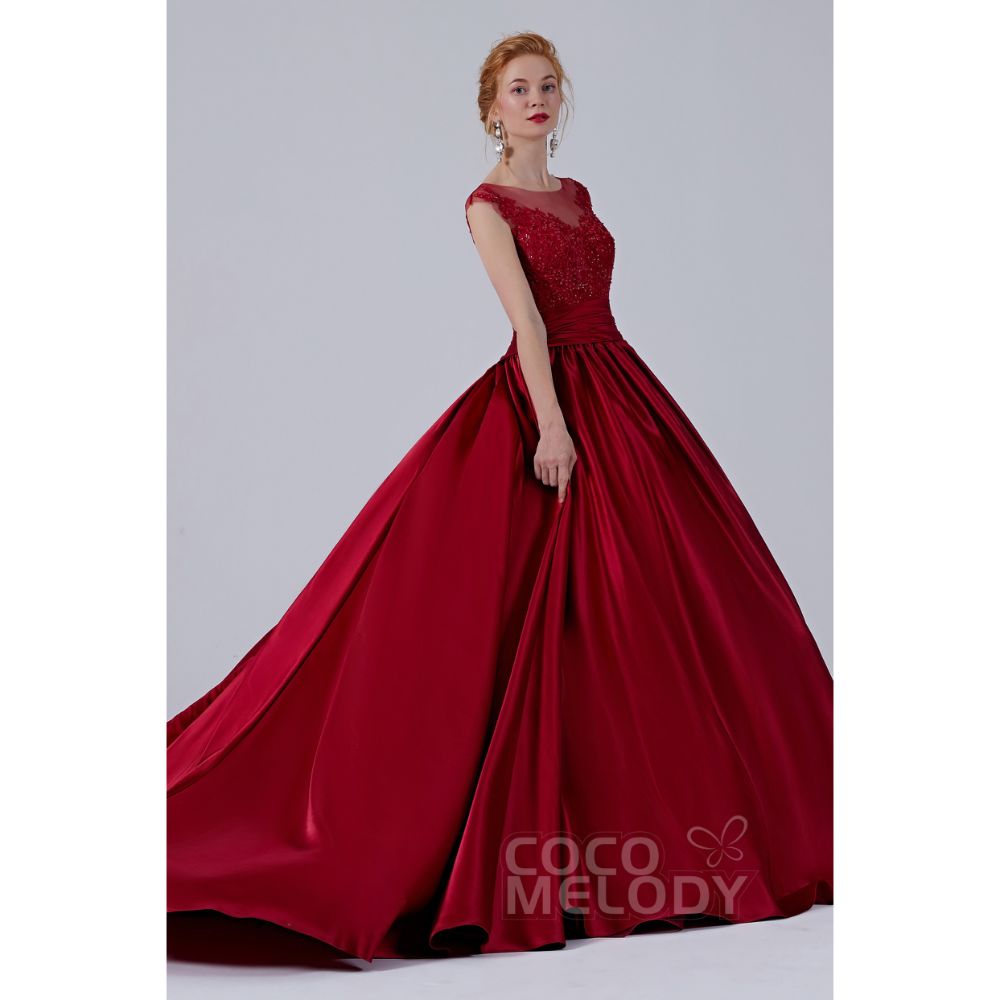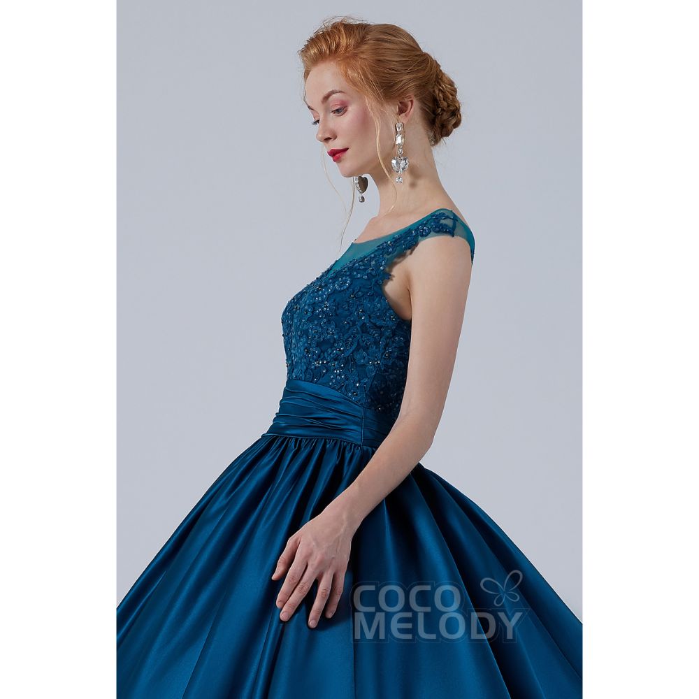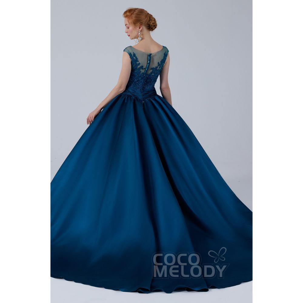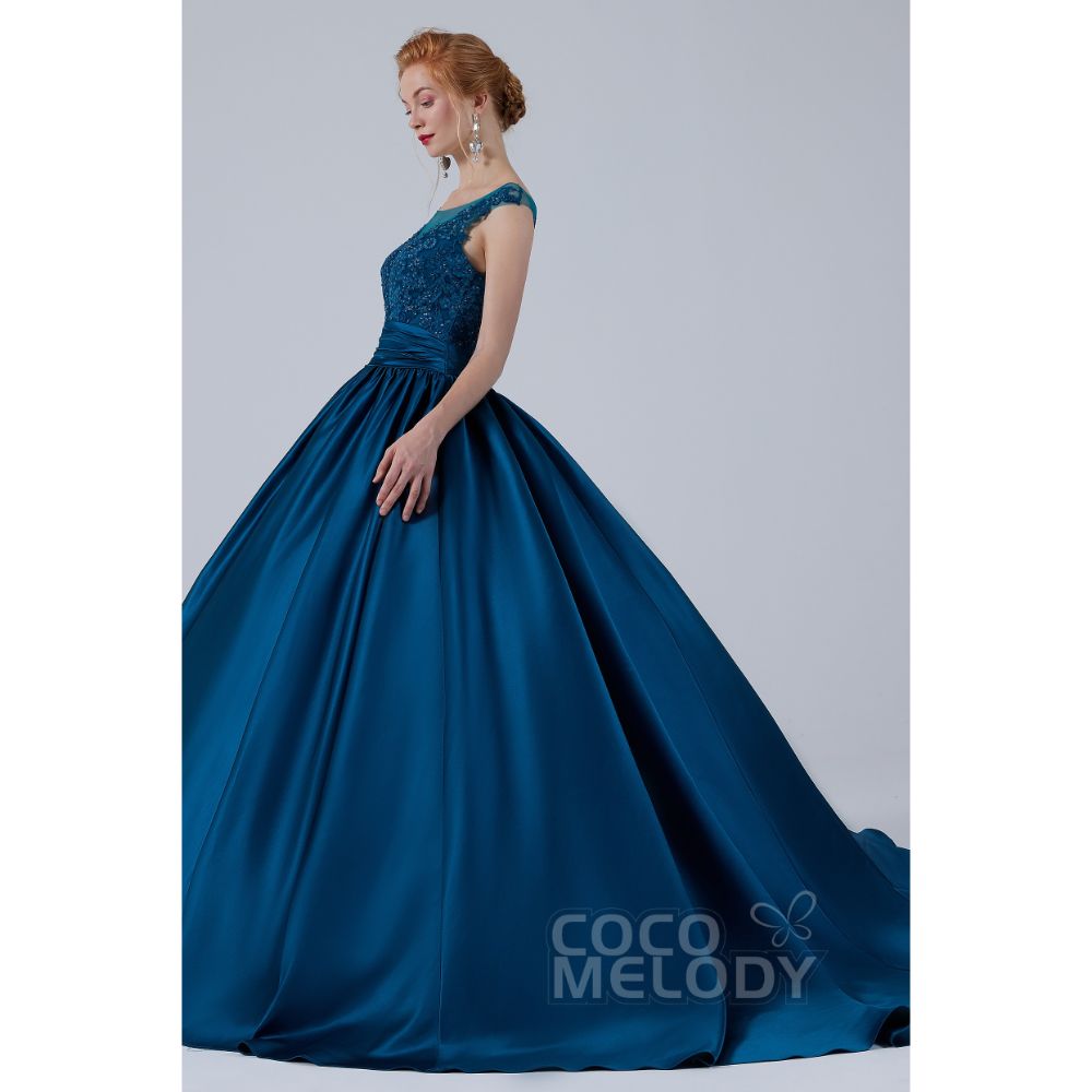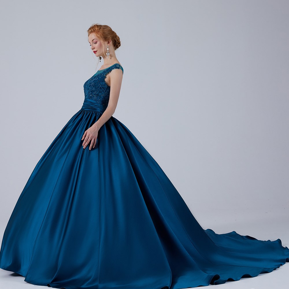CW2106 プリンセス ボートネック サテン レース カラードレス 【結婚式 カラードレス オーダーメイド】