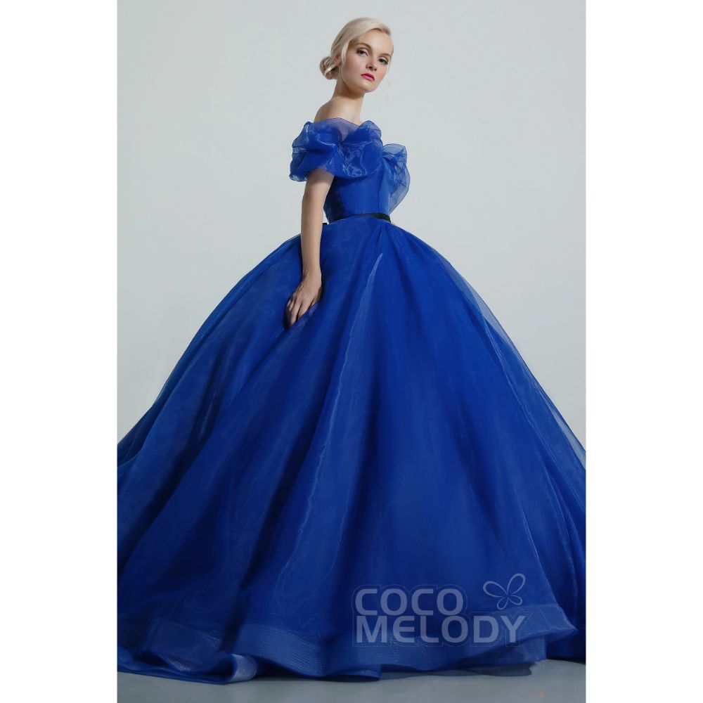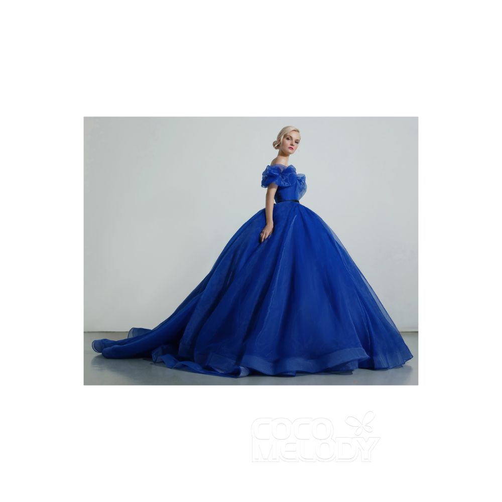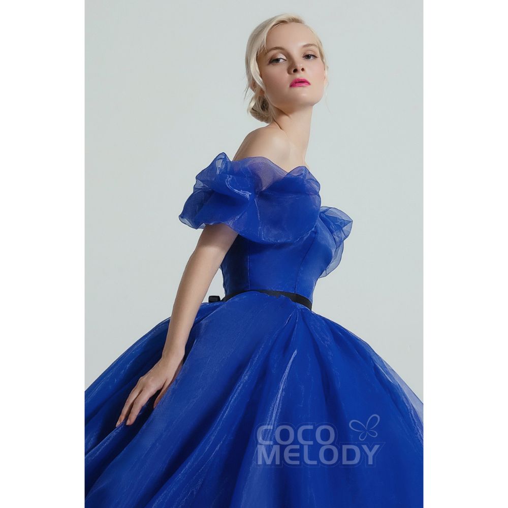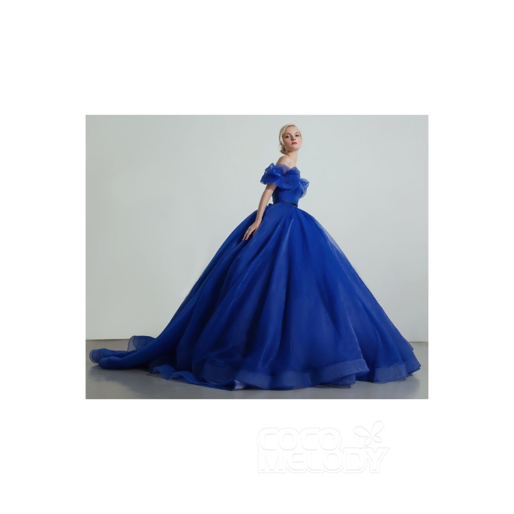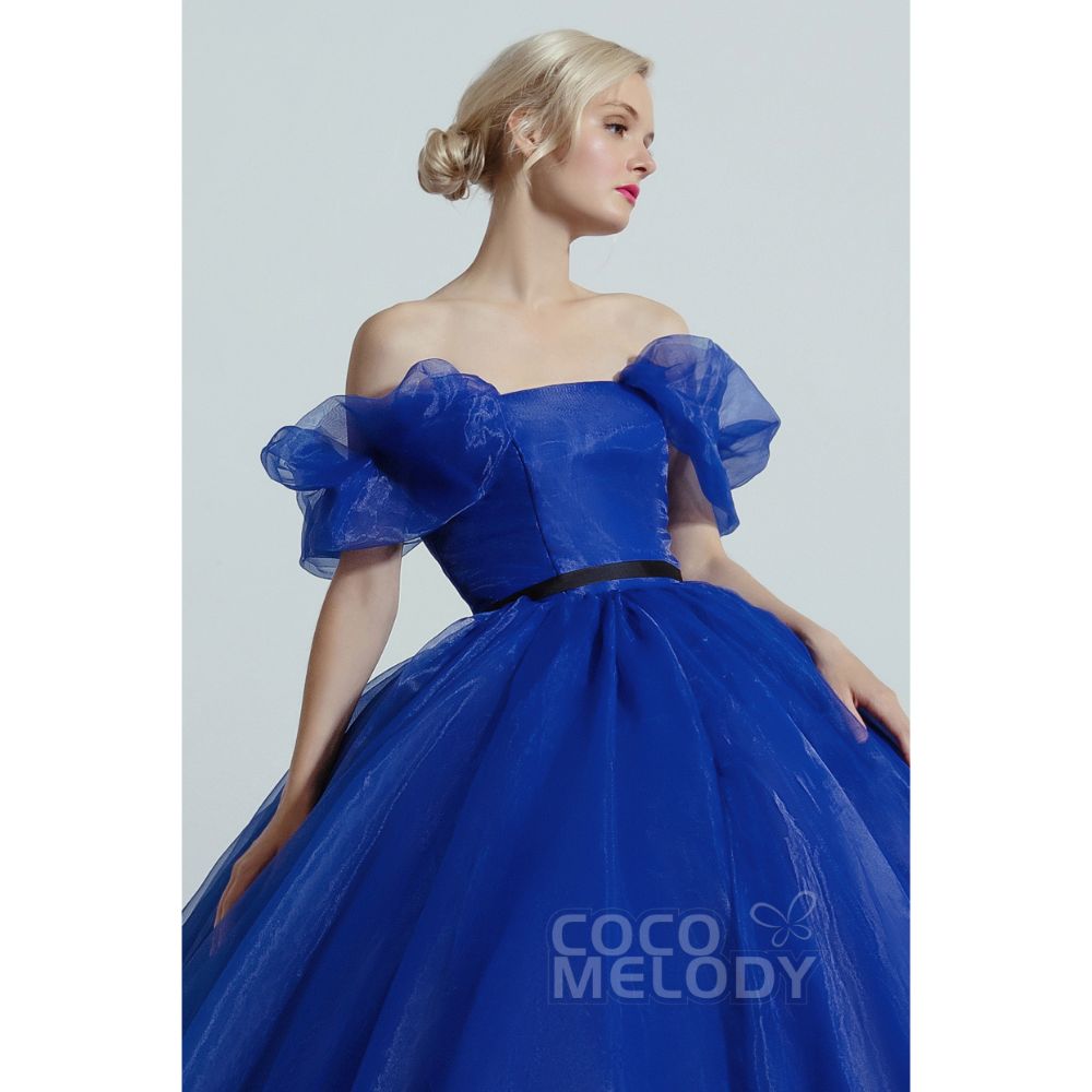 CW2098 プリンセス エレガント 取り外し可能なパフスリーブ ソーダライトブルー カラードレス 【結婚式 カラードレス オーダーメイド】