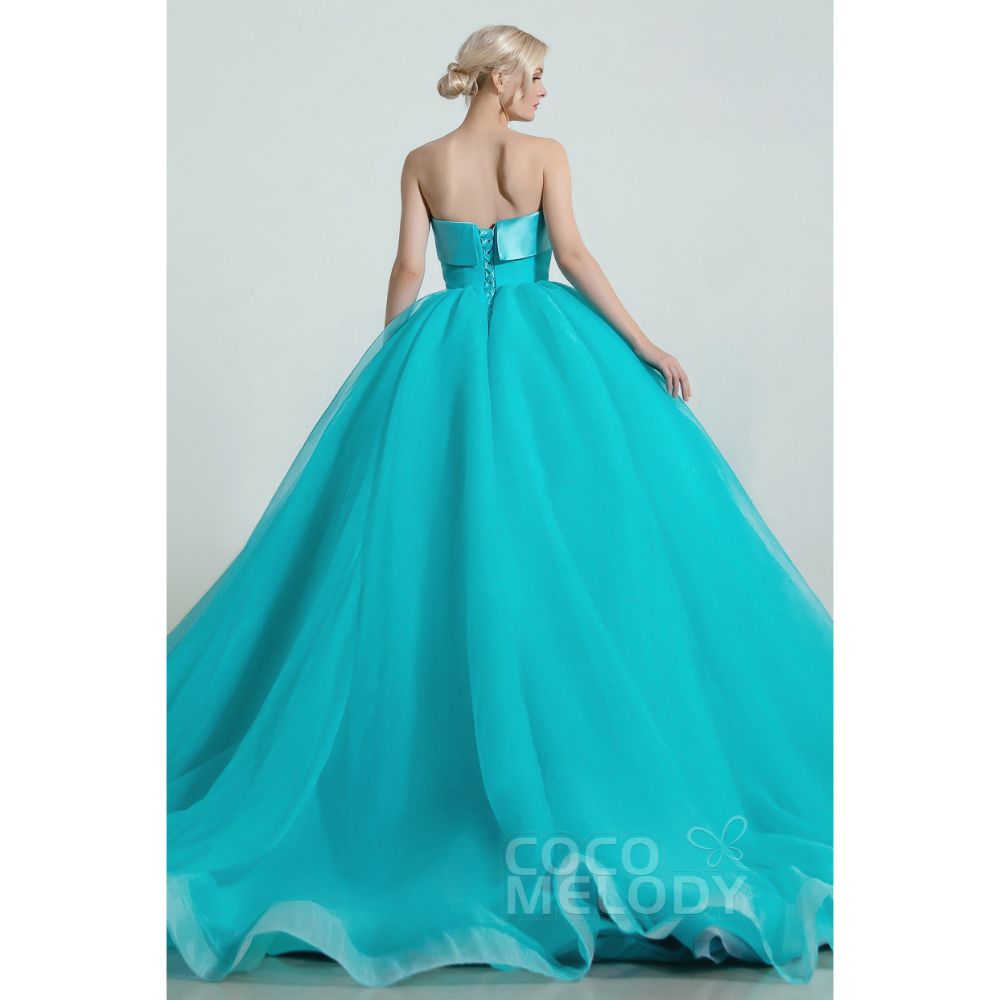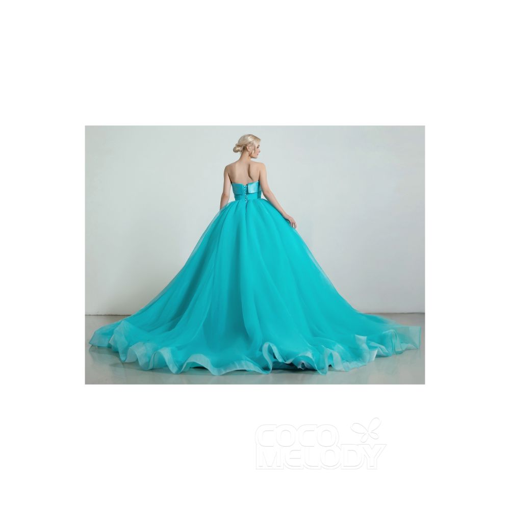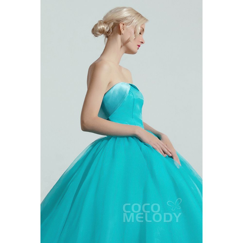 CW2097 プリンセス 取り外し可能な折り襟 ブルー カラードレス 【結婚式 カラードレス オーダーメイド】