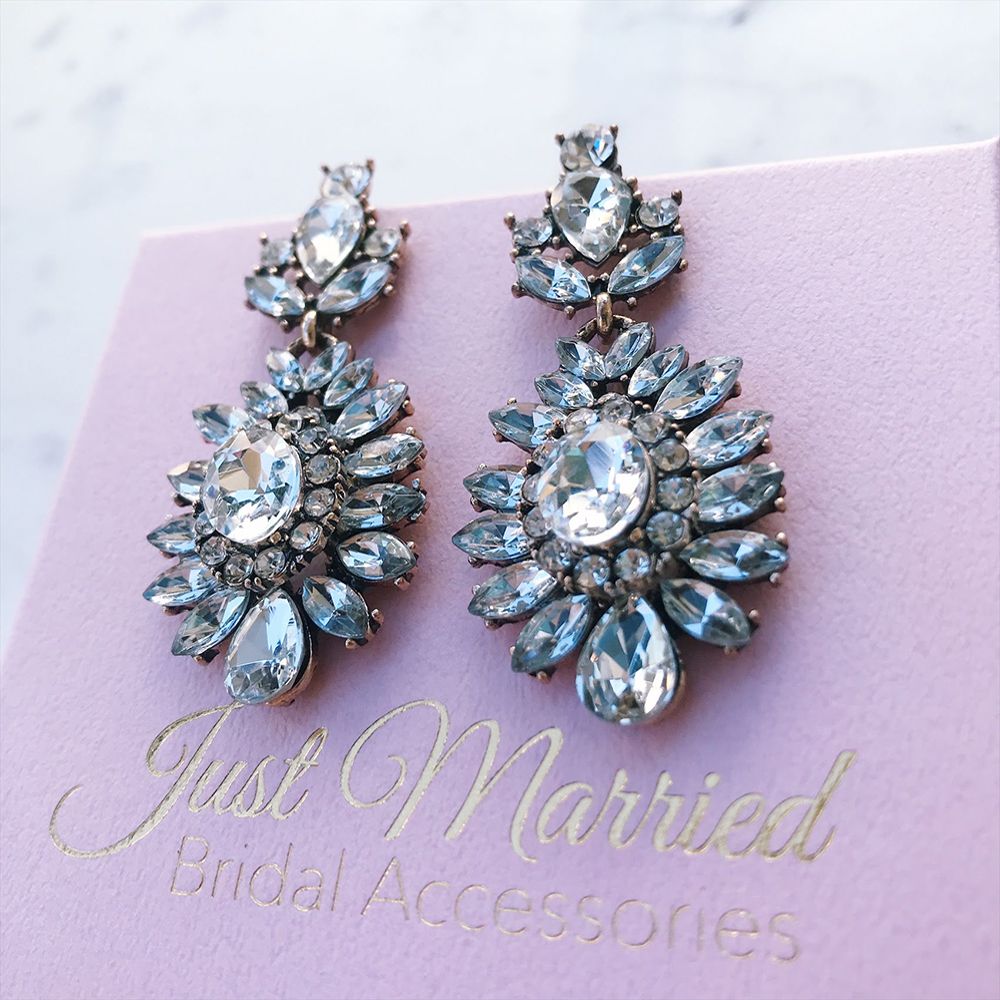 ヴィンテージ加工をしたゴールドの地金に、マーキスカットの大粒のクリアストーンのモチーフがキラキラと輝きます。