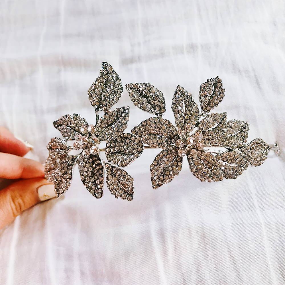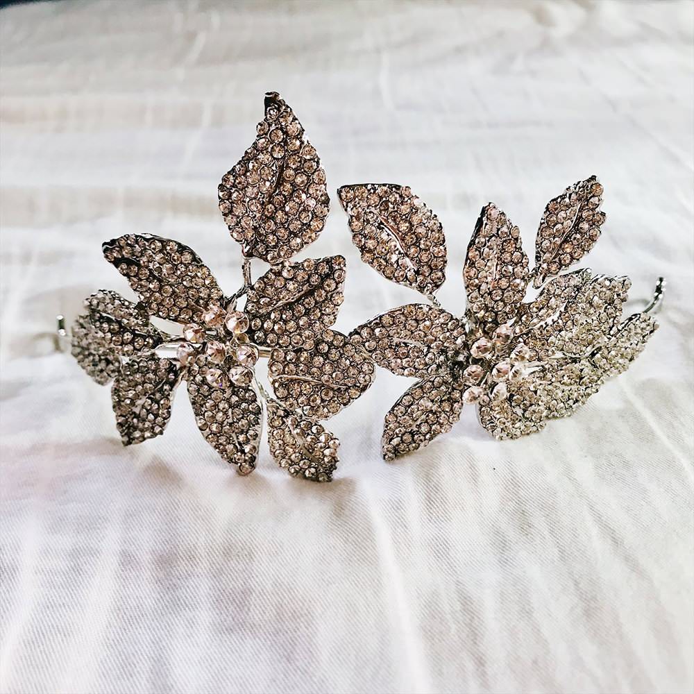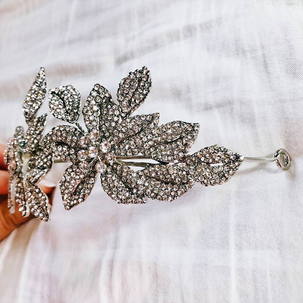 クリスタルが沢山散りばめられたフラワーモチーフのヘッドドレスです。