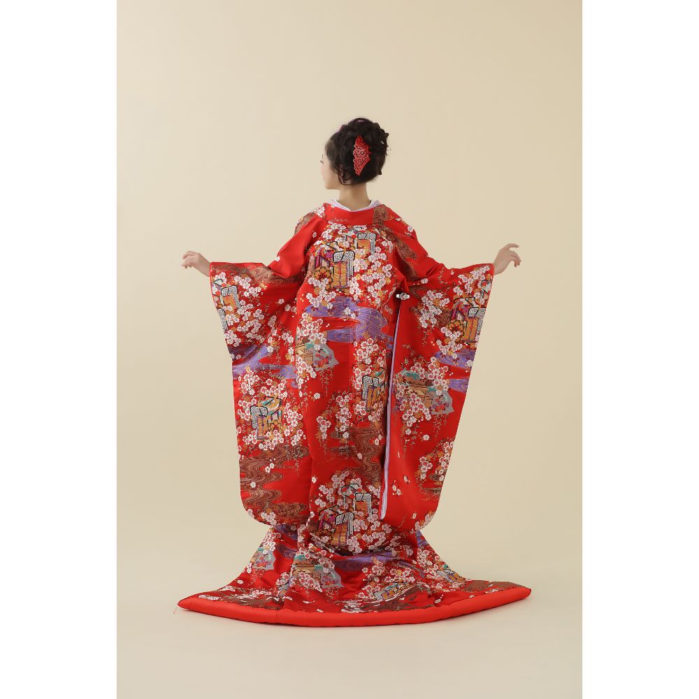 枝垂れ桜に御所車 【結婚式 和装 色打掛 レンタル】