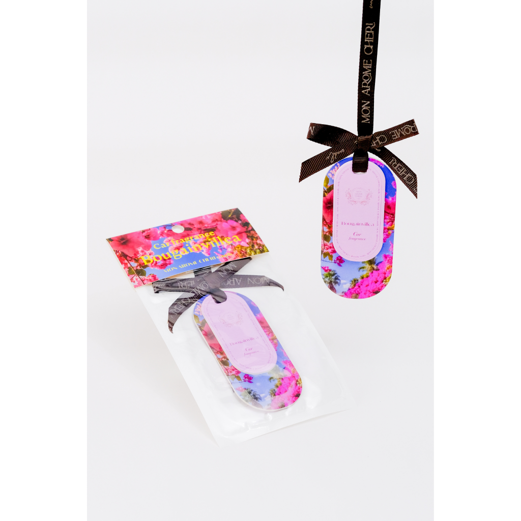 ブーゲンビリアのやわらかな香りが車内に広がり、通勤やお出かけの時間を特別なひとときに。吊り下げるだけの簡単設置で、日常のドライブに心地よい癒しをプラスします。車内を上品に演出する車用フレグランスです。