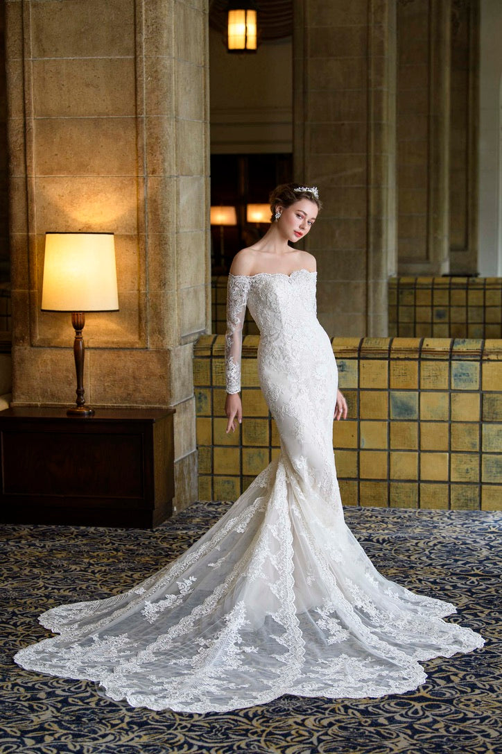 ナチュラルな場所からラグジュアリーな場所まで様々なシチュエーションに対応できるドレスに仕上がりました。あえてルーズっぽくしたオフショルダーも可愛い。