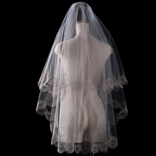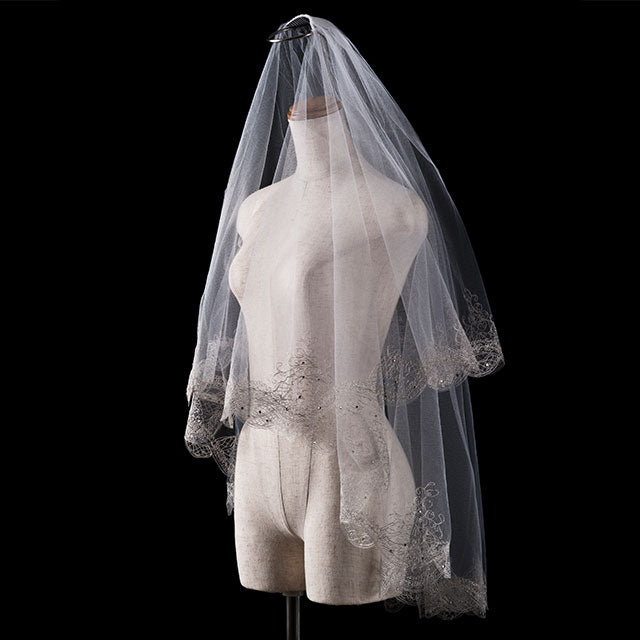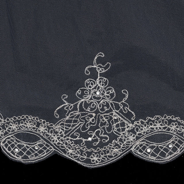 美しさを引き立てる特別なブライダルアクセサリー、【ウエディングベール】V3246-1(Sサイズ0.6+1M)の登場です!レース刺繍にクリスタルが施された透明感のあるこのベールは、特別な日の装いにふさわしいアイテムです。繊細でエレガントなディテールが華やかさを与え、あなたの魅力を一層引き立て、心に残る瞬間を演出します。
