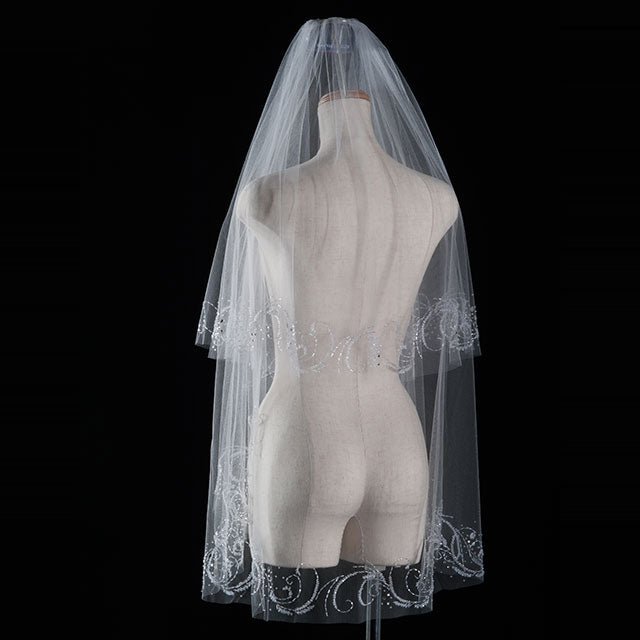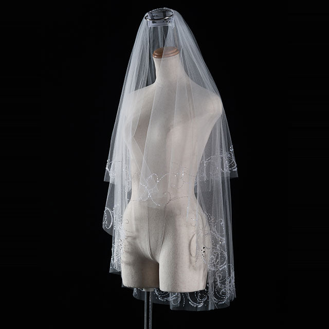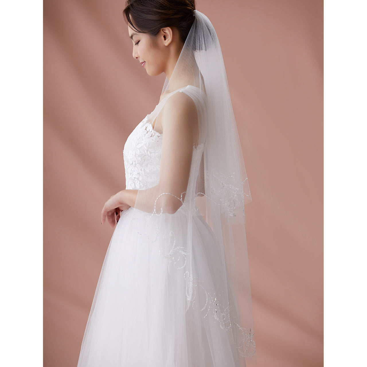 美しさを引き立てる特別なブライダルアクセサリー、【ウエディングベール】V3314-1(Sサイズ0.6+1M)の登場です!上品なビーズ刺繍が施されたこのベールは、特別な日の装いにぴったりのアイテムです。洗練されたデザインが、あなたの美しさを一層引き立て、忘れられない瞬間を演出します。