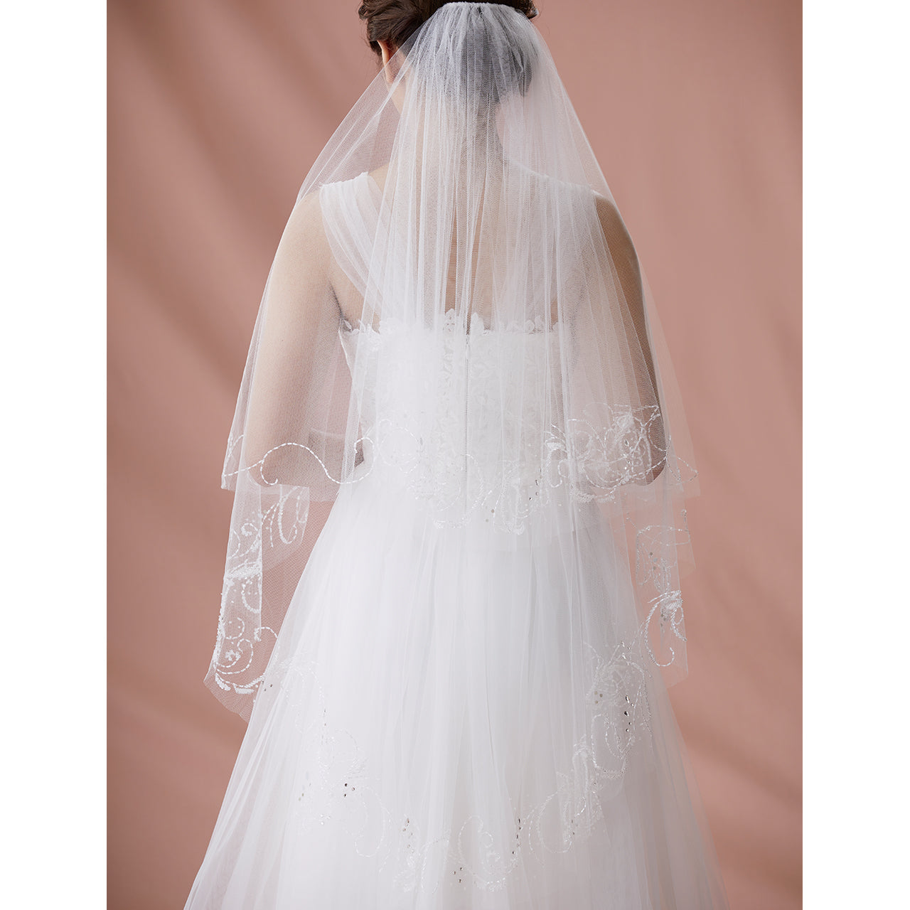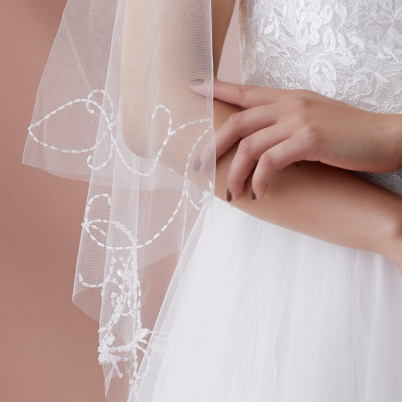 美しさを引き立てる特別なブライダルアクセサリー、【ウエディングベール】V3314-1(Sサイズ0.6+1M)の登場です!上品なビーズ刺繍が施されたこのベールは、特別な日の装いにぴったりのアイテムです。洗練されたデザインが、あなたの美しさを一層引き立て、忘れられない瞬間を演出します。