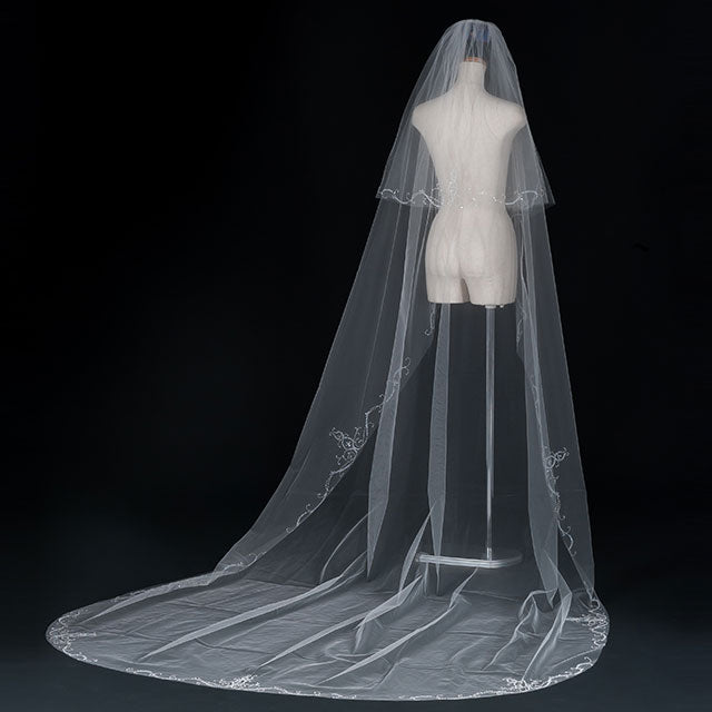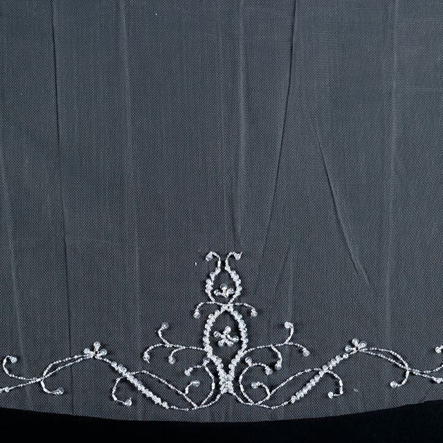 美しさを引き立てる特別なブライダルアクセサリー、【ウエディングベール】V3317-1(Lサイズ0.6+3M)の登場です!華やかなビーズとスパンコールでデザインされた刺繍が施されたこのベールは、特別な日の装いにぴったりのアイテムです。上品でありながら華やかなデザインが、あなたの美しさを一層際立たせ、心に残る瞬間を演出します。