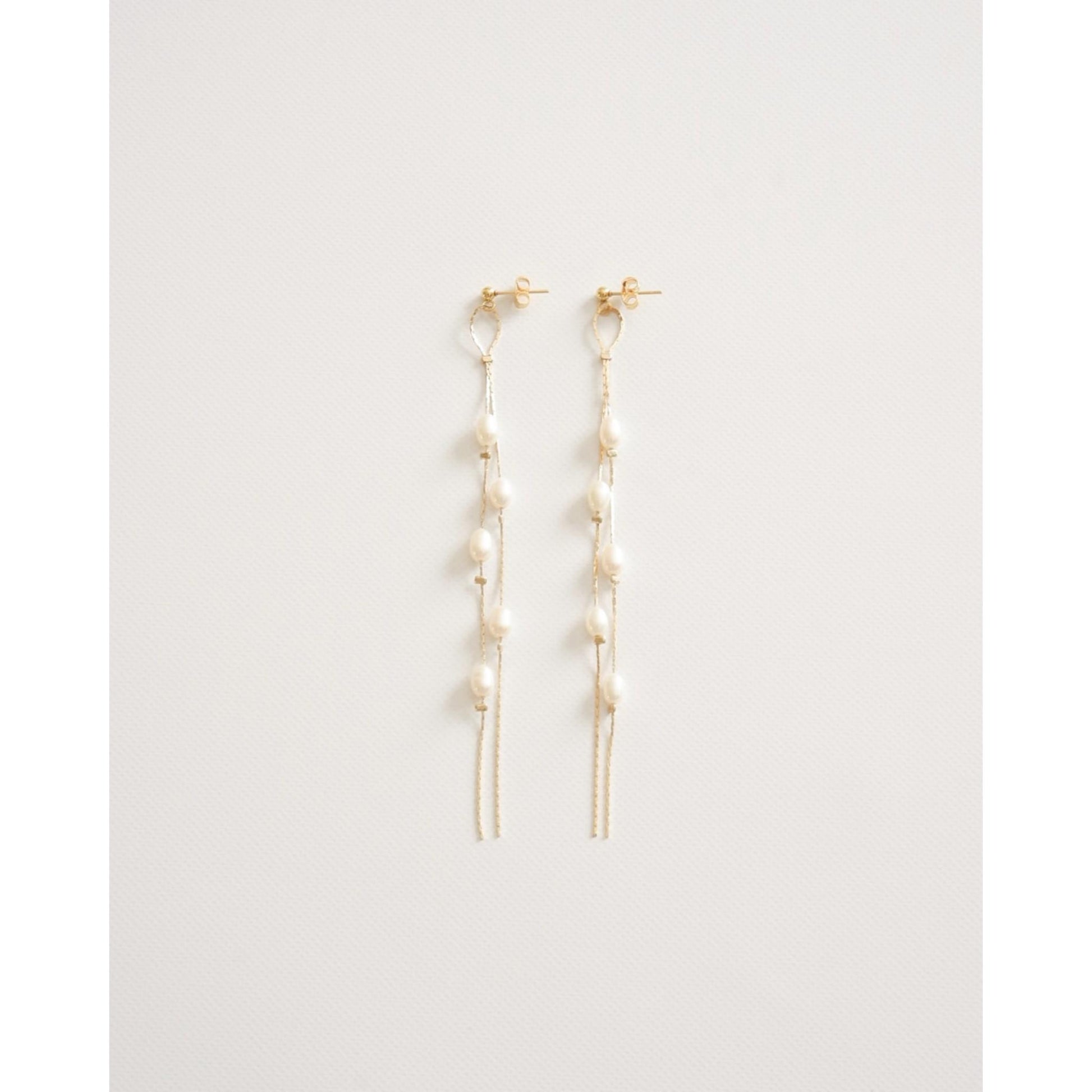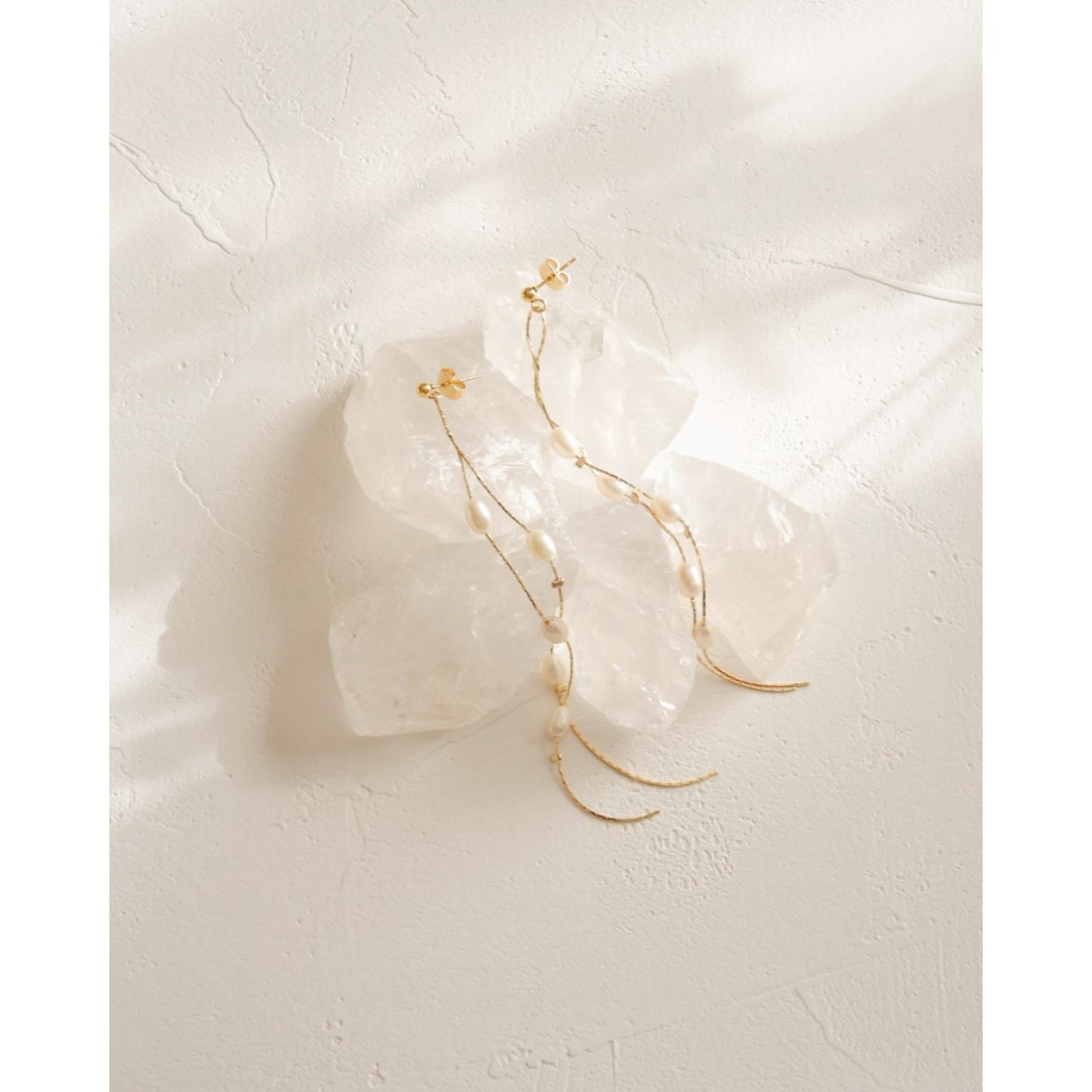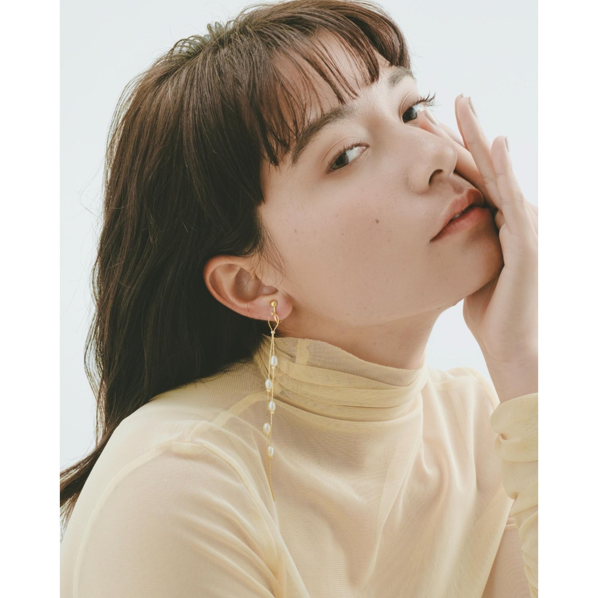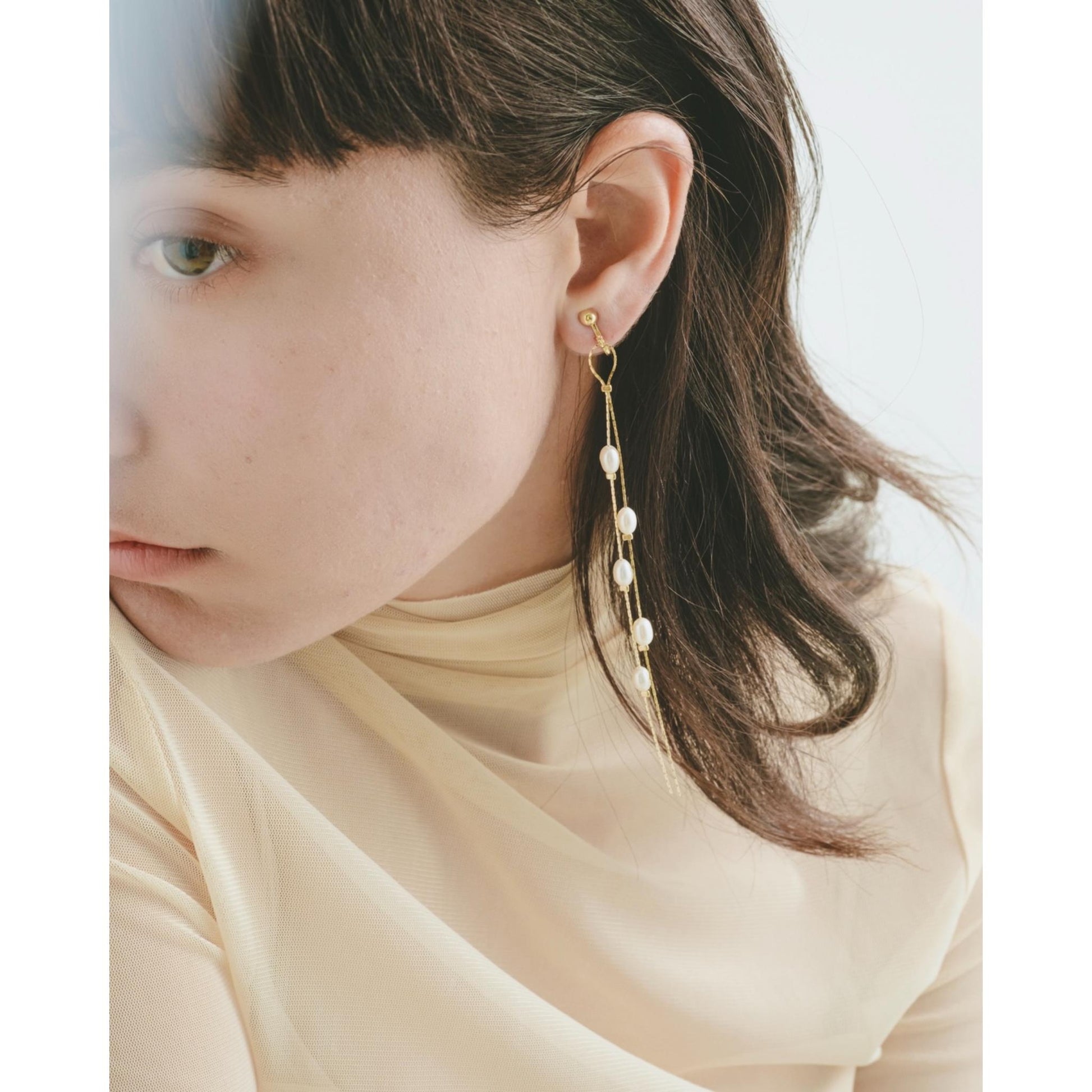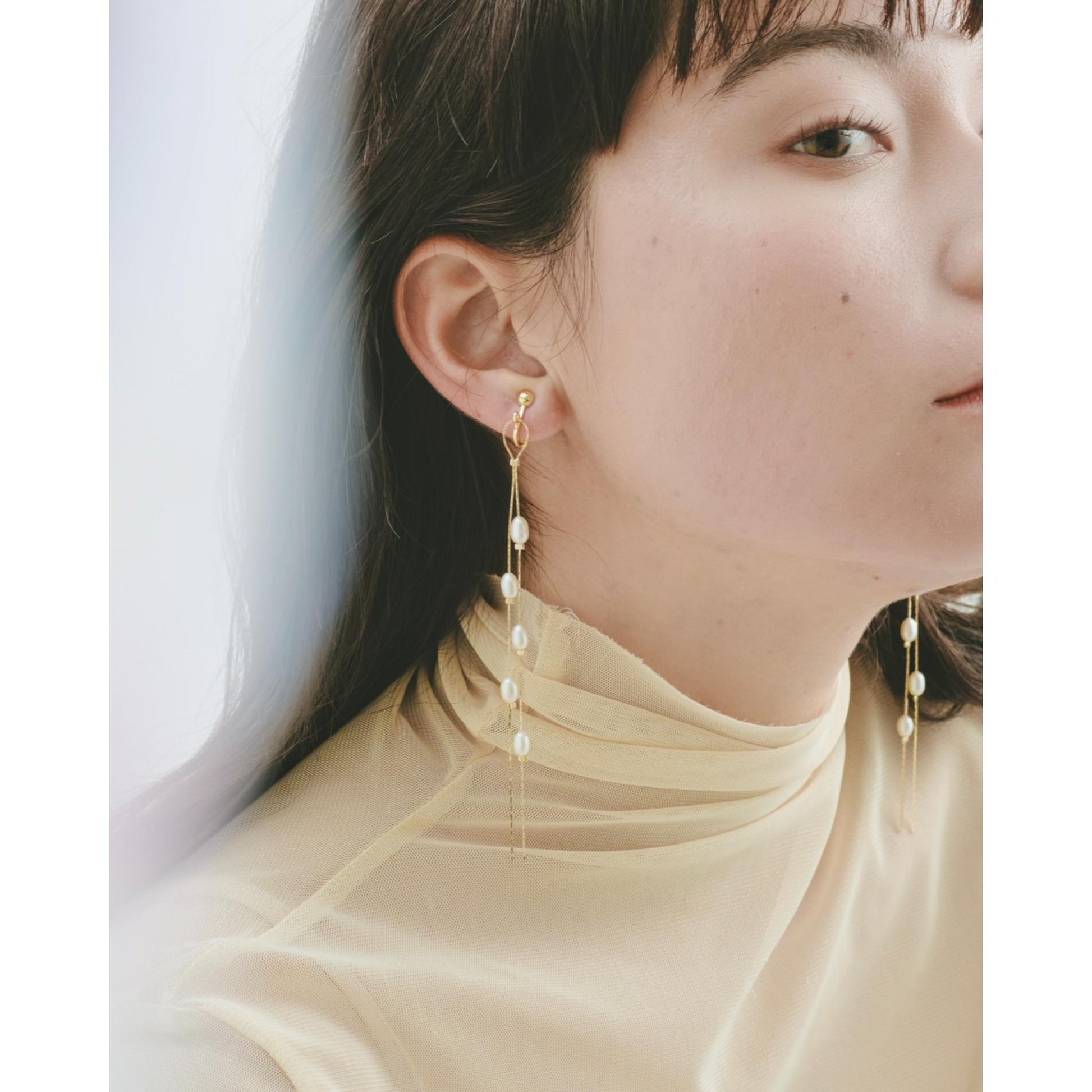 やさしく艶めく淡水パールと華奢なチェーンが優雅に揺れる耳飾り