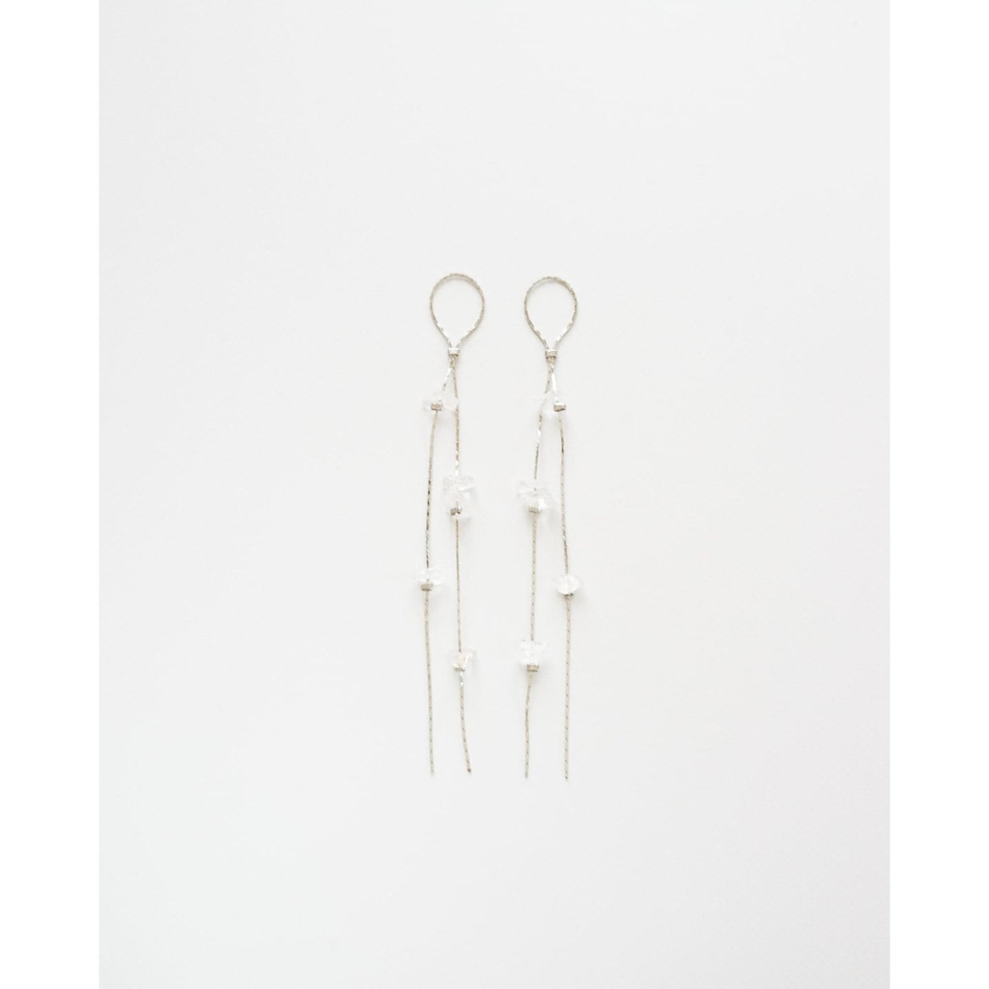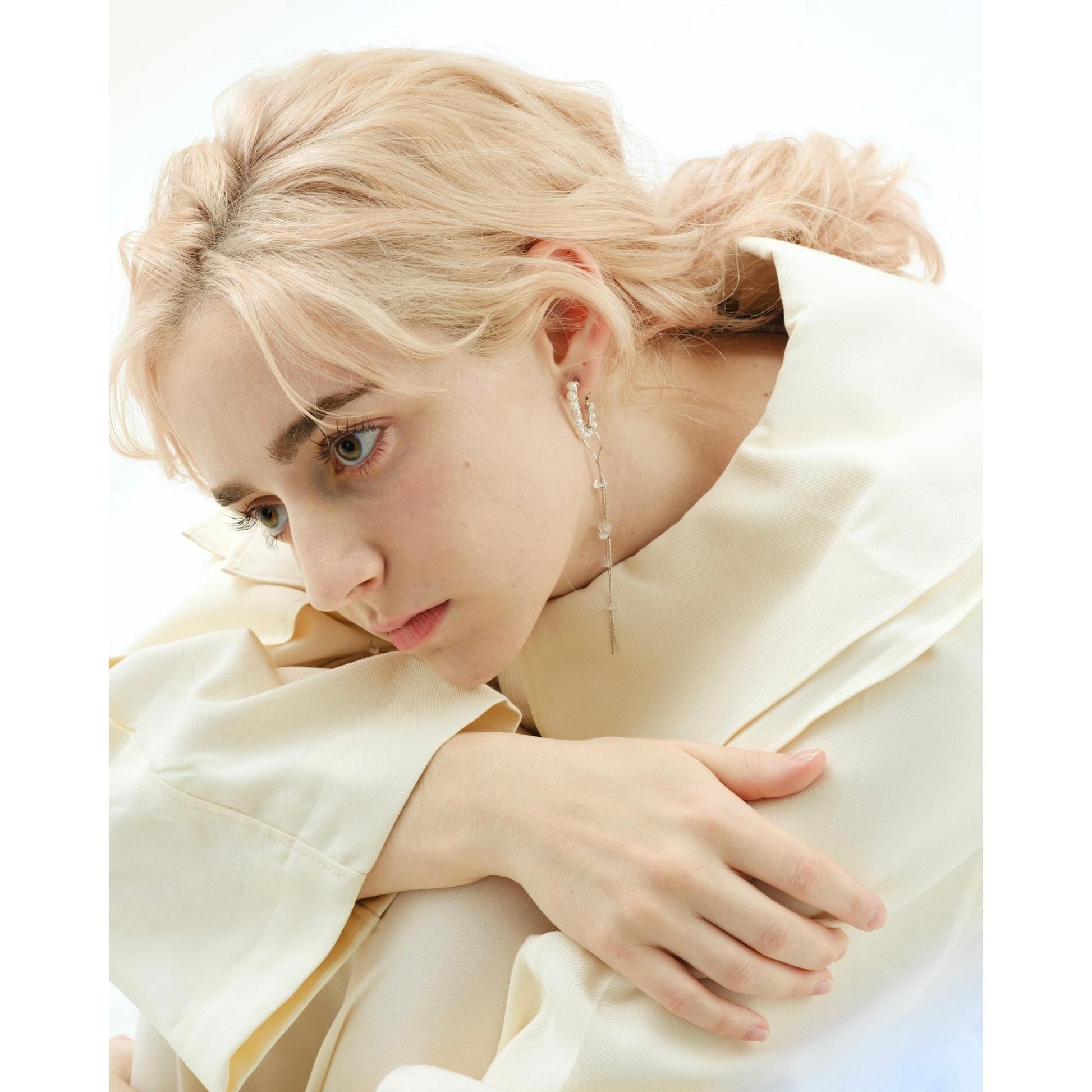 いびつさが愛らしい水晶さざれ石と華奢なチェーンが光にあたる度に煌めき、女性らしい清楚な印象に◎