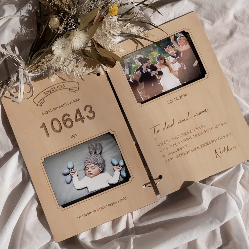 あなたの結婚式に、ご両親のお誕生日に、成人式に、今まで育ててくれた感謝の気持ちを込めてプレゼントしませんか。