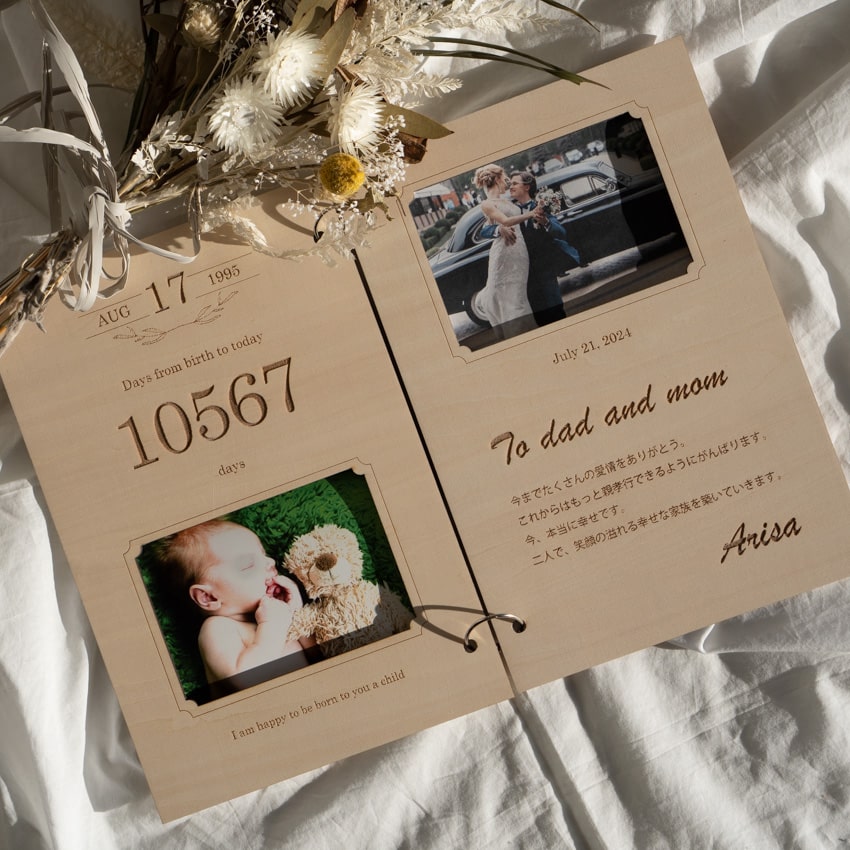あなたの結婚式に、ご両親のお誕生日に、成人式に、今まで育ててくれた感謝の気持ちを込めてプレゼントしませんか。