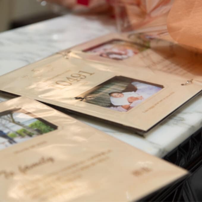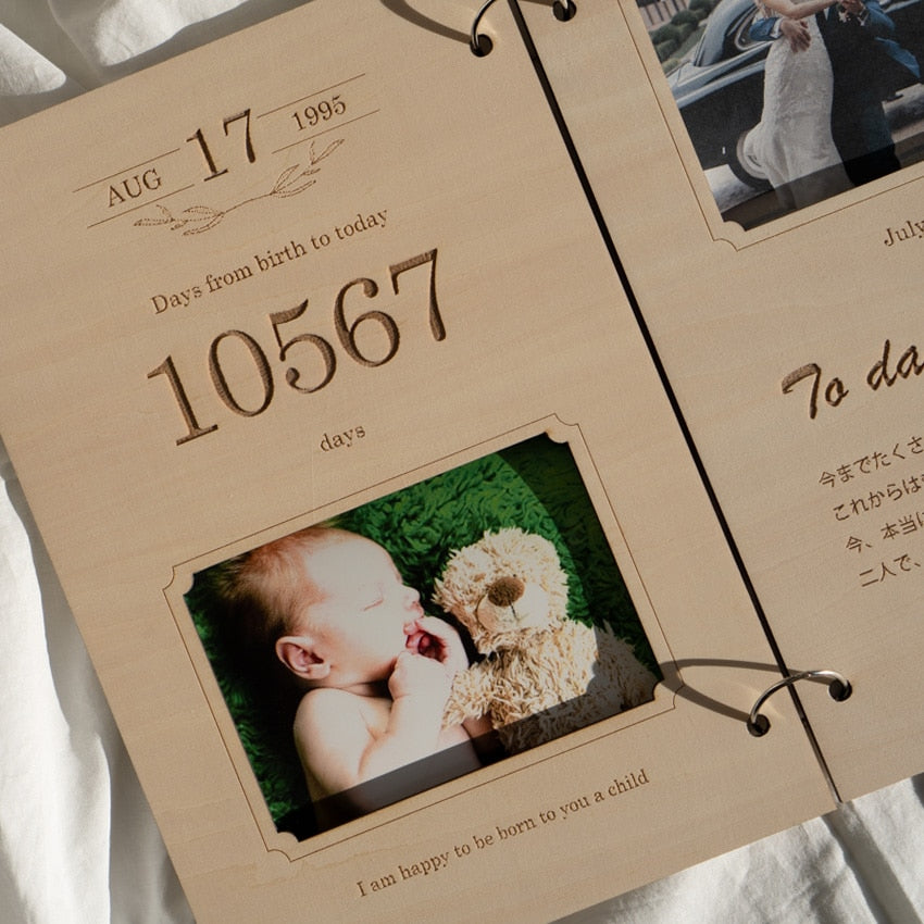 生まれたときの写真や、結婚式の写真を入れて完成します。