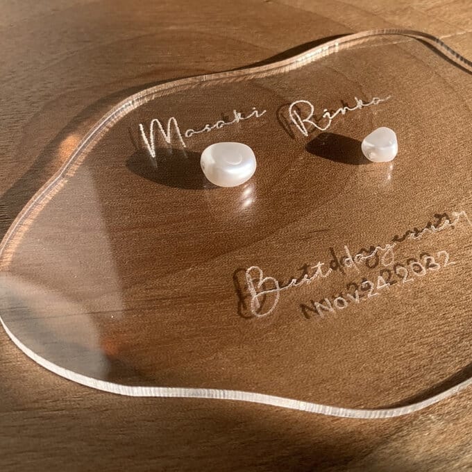 アクリルの透明感とバロックビーズの光沢感が、あなたの結婚式を華やかに演出してくれます。