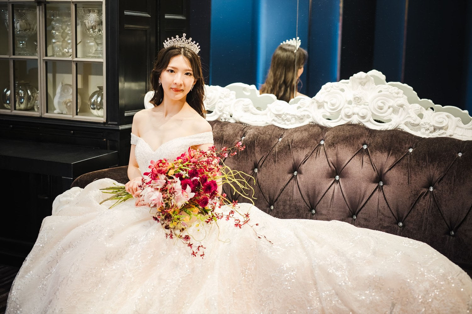 ティアラやネックレス・ベールなどと組み合わせていただくと、王国風でエレガントなコーディネートが完成し、お姫様やプリンセスのようなロマンティックな花嫁姿が理想な方におすすめです。