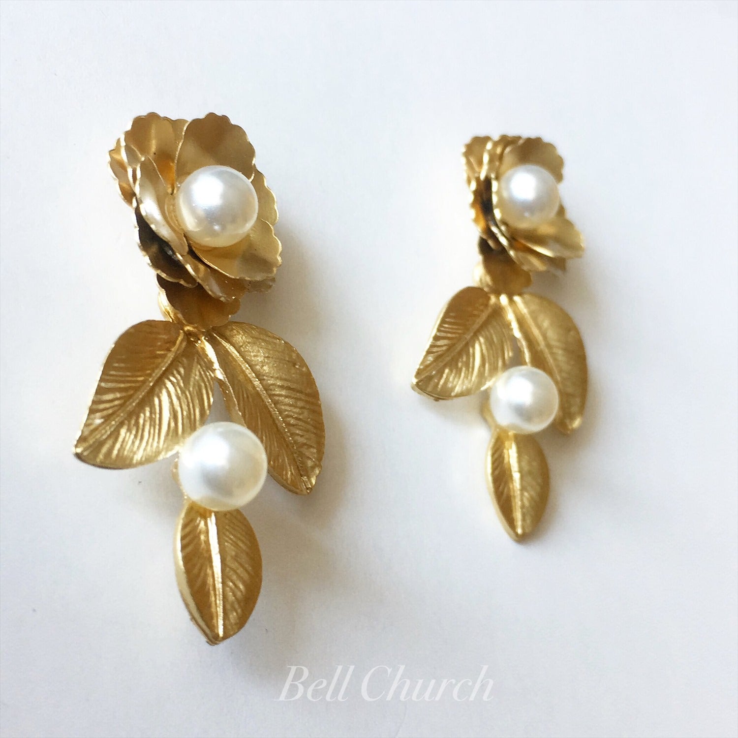 ウェディングピアス イヤリング |お花&リーフモチーフ|パール|ゴールド (BC-E45)【結婚式 アクセサリー ピアス イヤリング】