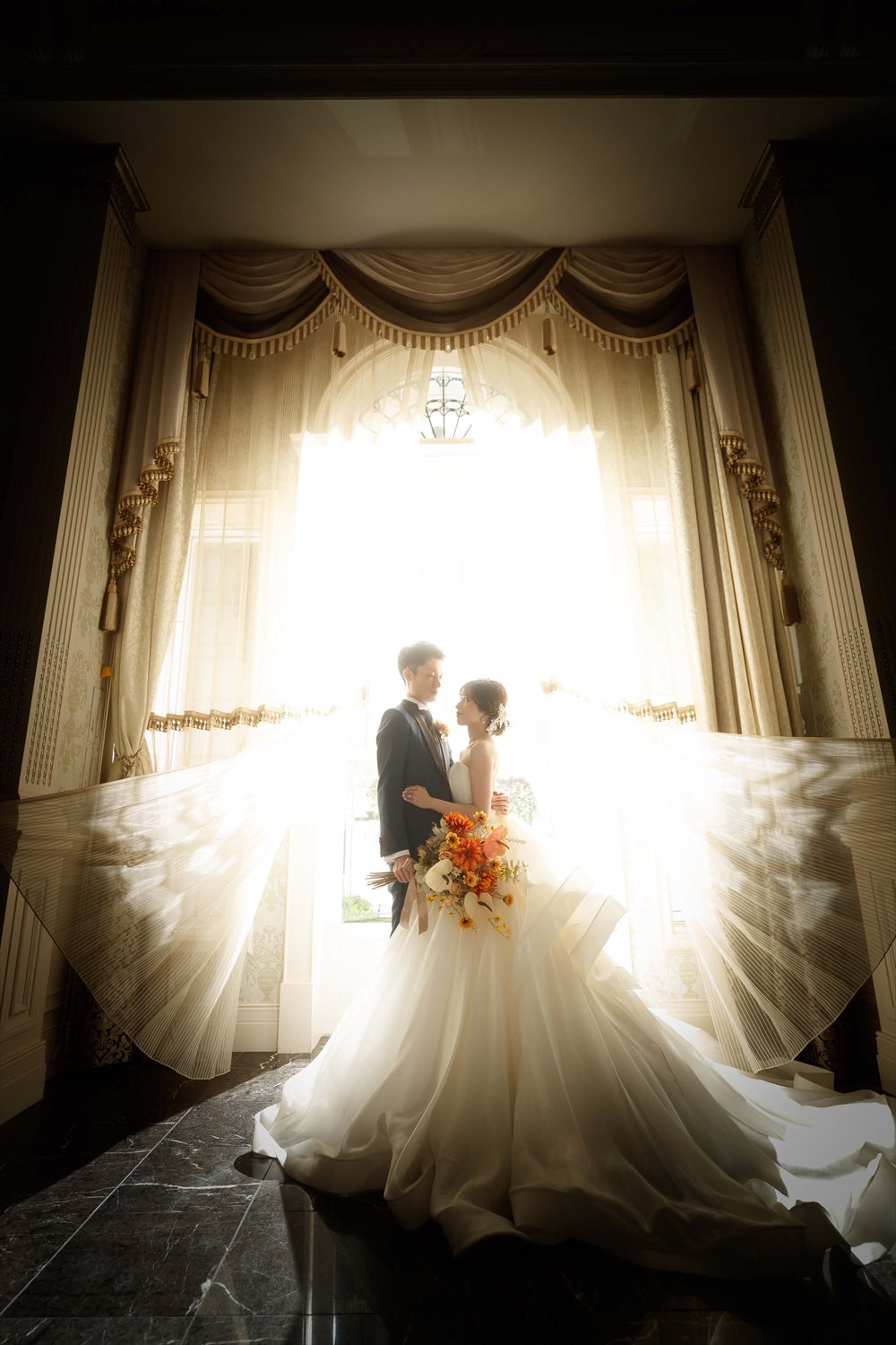 ティアラやネックレスと合わせて、ロマンチックでクラシカルな王道コーディネートはいかがでしょうか。