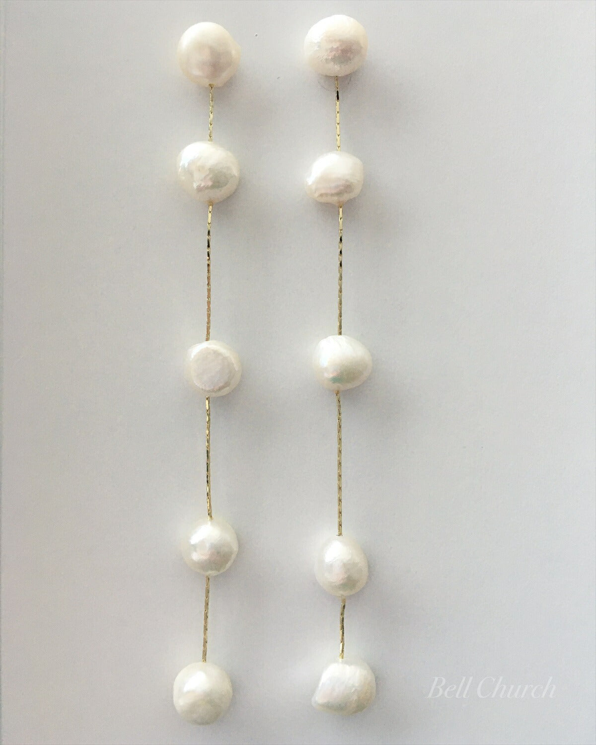 ※お届けするピアスのパールは、可能な限り左右で似た大きさ、形で揃えて製作をしておりますが、パール表面の凹凸や、色、光沢感、大きさなど一粒ずつ個性的な特徴はバロックパールの魅力としてご理解いただきますようお願いいたします。