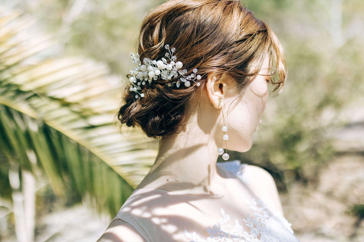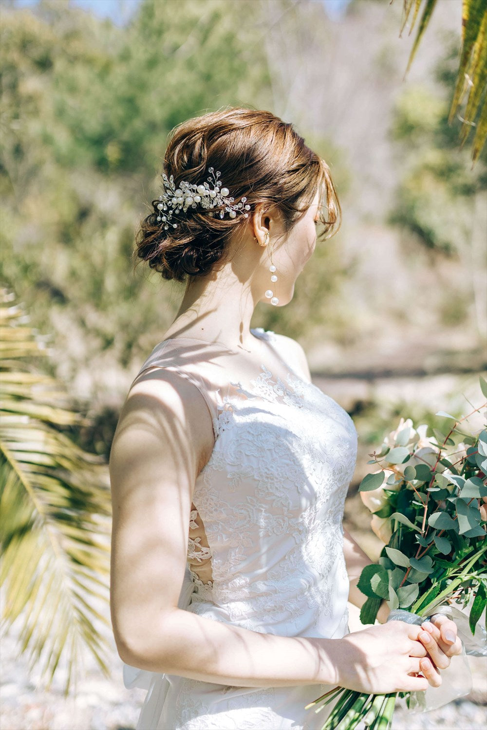 シニヨンヘアやポニーテールに合わせて、花嫁様のどんなヘアスタイルにも相性抜群の万能アイテムです。