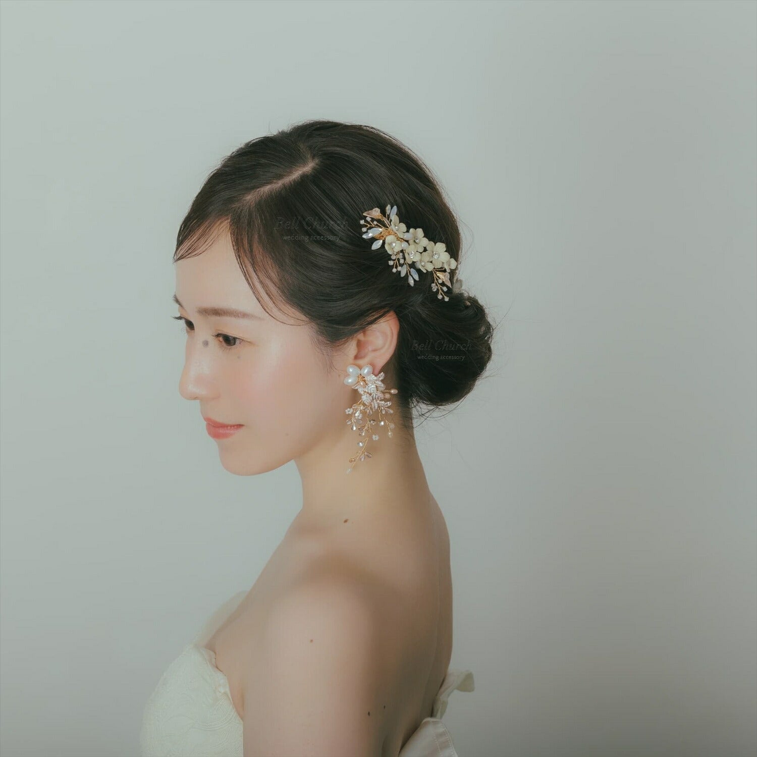 繊細でありつつみんなの視線を集めるインパクトがあり、花嫁様の横顔を華やかに彩ります。