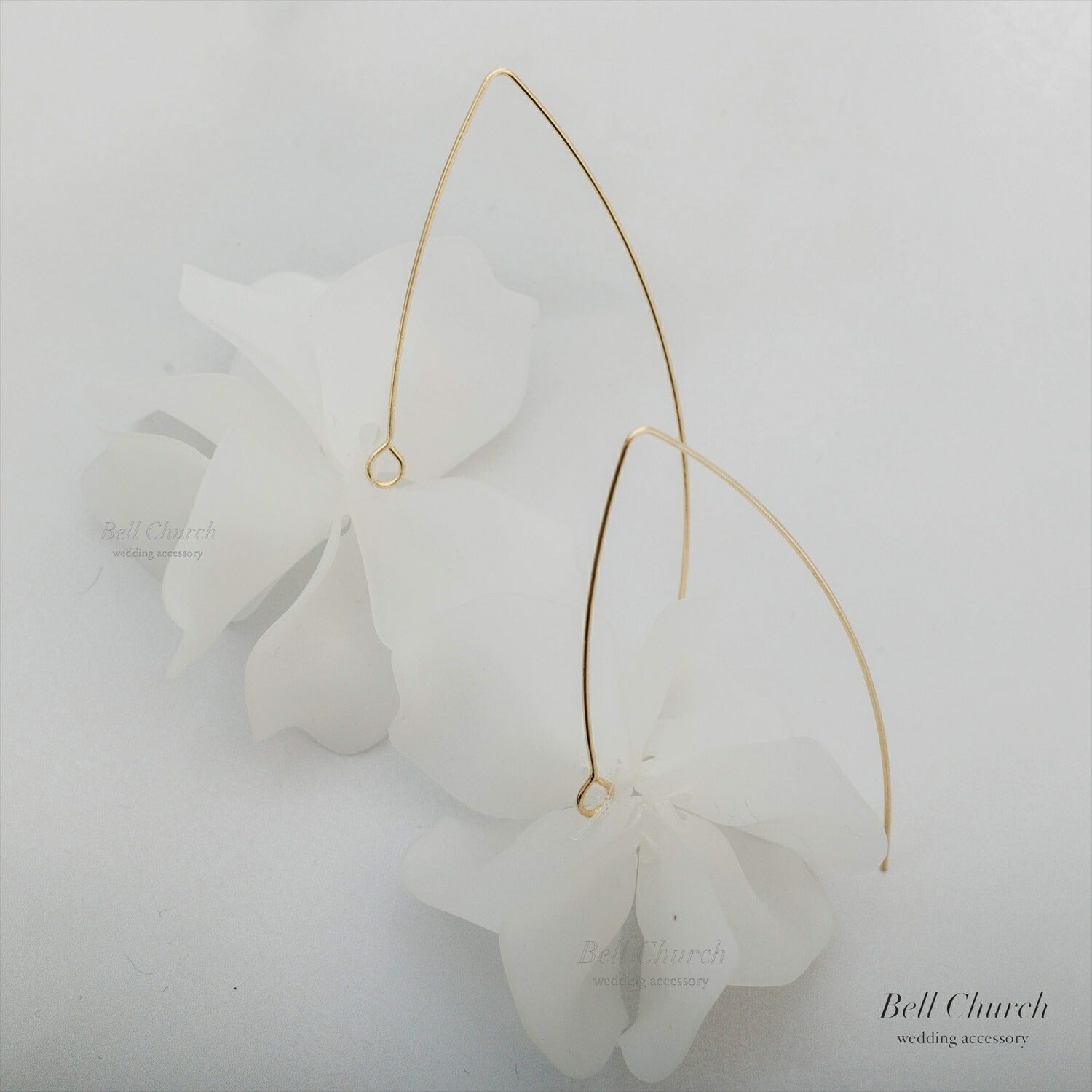 華奢なゴールドワイヤーのピアスパーツに真っ白な花びらチャームをたっぷり通しました。